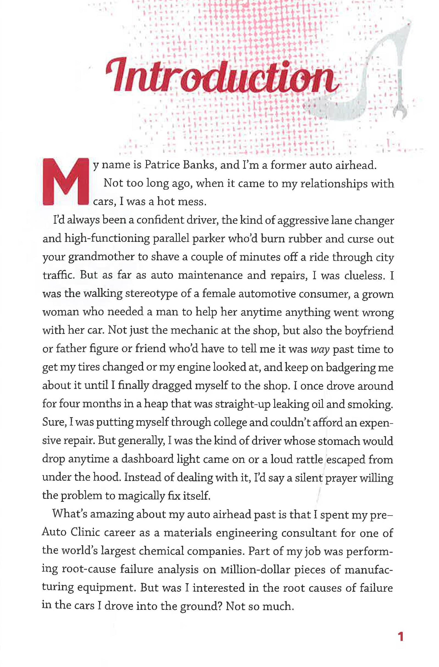 Patrice Banks was once like most of us: a self-professed "auto airhead" who was clueless about car maintenance, yet convinced that mechanics were taking advantage of her. Now she's an auto pro devoted to empowering women to learn basic car repairs and knowing what to do in an emergency. So whether you get a flat tire when you're stranded in the middle of nowhere, your car overheats, or a mysterious dashboard light suddenly starts blinking, help is just a reach-in-the-glove-box away.