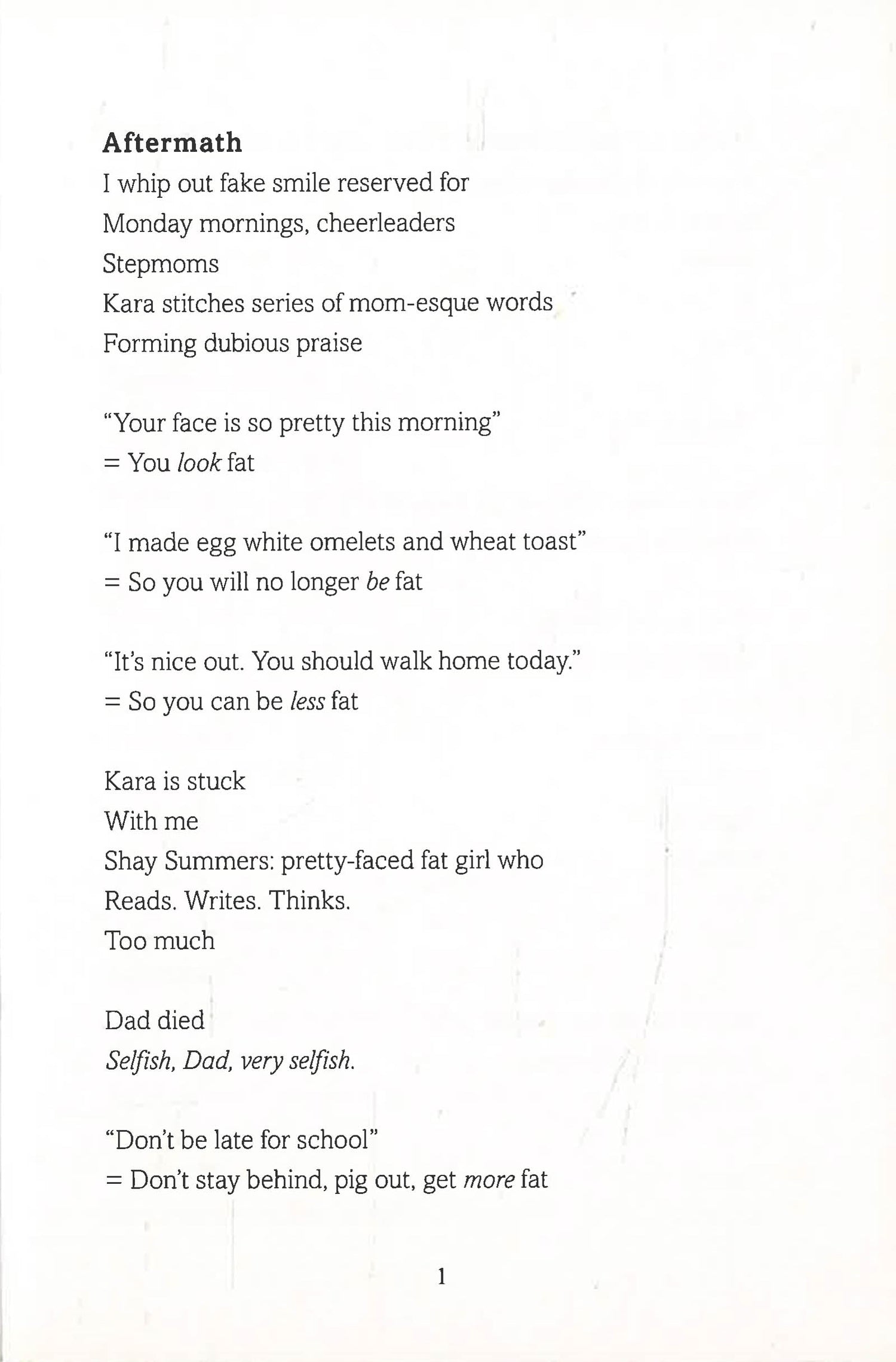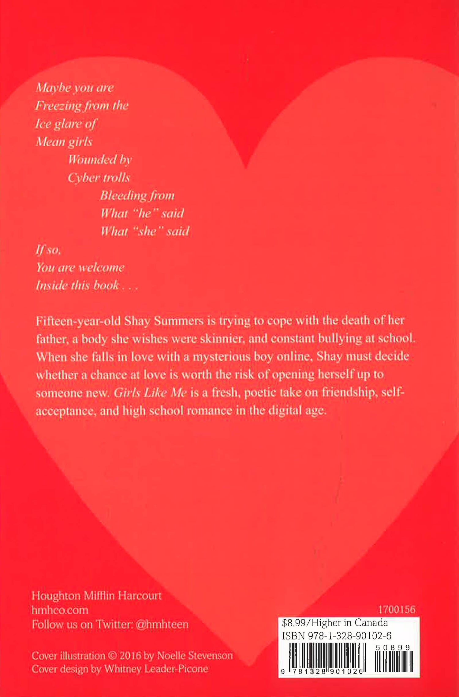 Fifteen-year-old Shay Summers is trying to cope with the death of her father, being overweight, and threats from a girl bully in school. When she falls in love with Blake, a mysterious boy online, insecure Shay doesn't want to tell him who she is. But with the help of her two best friends, as well as an assist by Kermit and Miss Piggy, ultimately Shay and Blake’s love prevails. Girls Like Me is a fun and fresh poetic take on teen angst, social media and online anonymity, and high school romance.