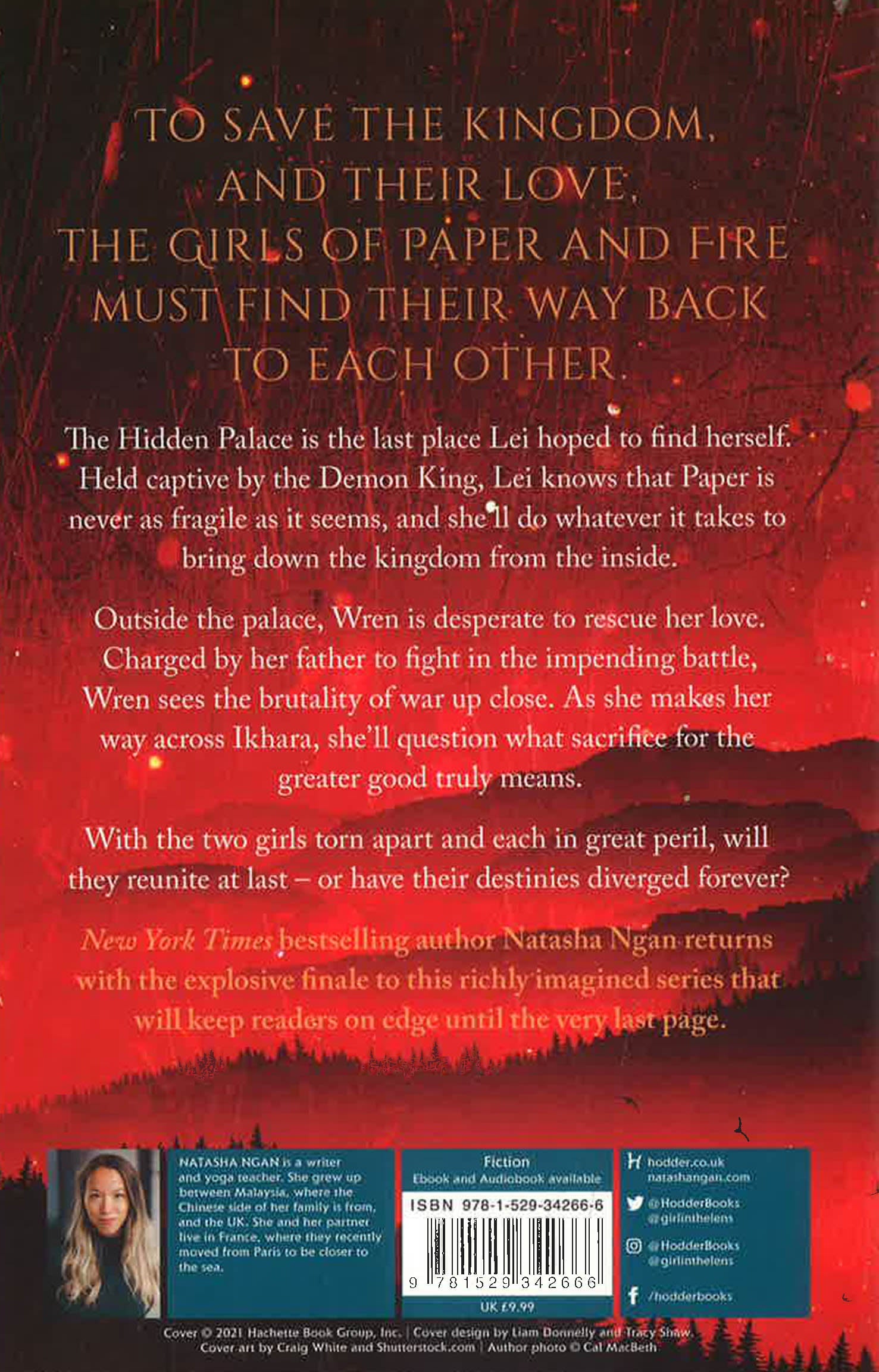New York Times bestselling author Natasha Ngan delivers a stunningly beautiful, heartbreaking finale to the epic Girls of Paper and Fire series. "Don't struggle, Lei-zhi. It's time to take you back to the Hidden Palace. You're going home." The final pages of Girls of Storm and Shadow brought a jaw-dropping conclusion that had the fates of Lei and Wren hanging in uncertainty. But one thing was certain - the Hidden Palace was the last place that Lei would ever consider home. The trauma and tragedy she suffered behind those opulent walls would plague her forever. She could not be trapped there with the sadistic king again, especially without Wren... The last Lei saw of the girl she loved, Wren was fighting an army of soldiers in a furious battle to the death. With the two girls torn apart and each in terrorizing peril, will they find each other again or have their destinies diverged forever? Girls of Fate and Fury is the epic conclusion to the "glittering" and "adrenaline-soaked" series by Natasha Ngan, hailed as "a stunning, new talent" for her "beautiful, lush, lyrical" writing.