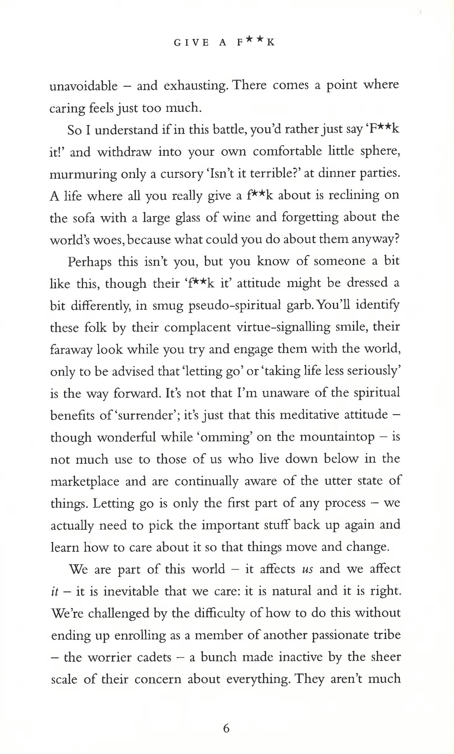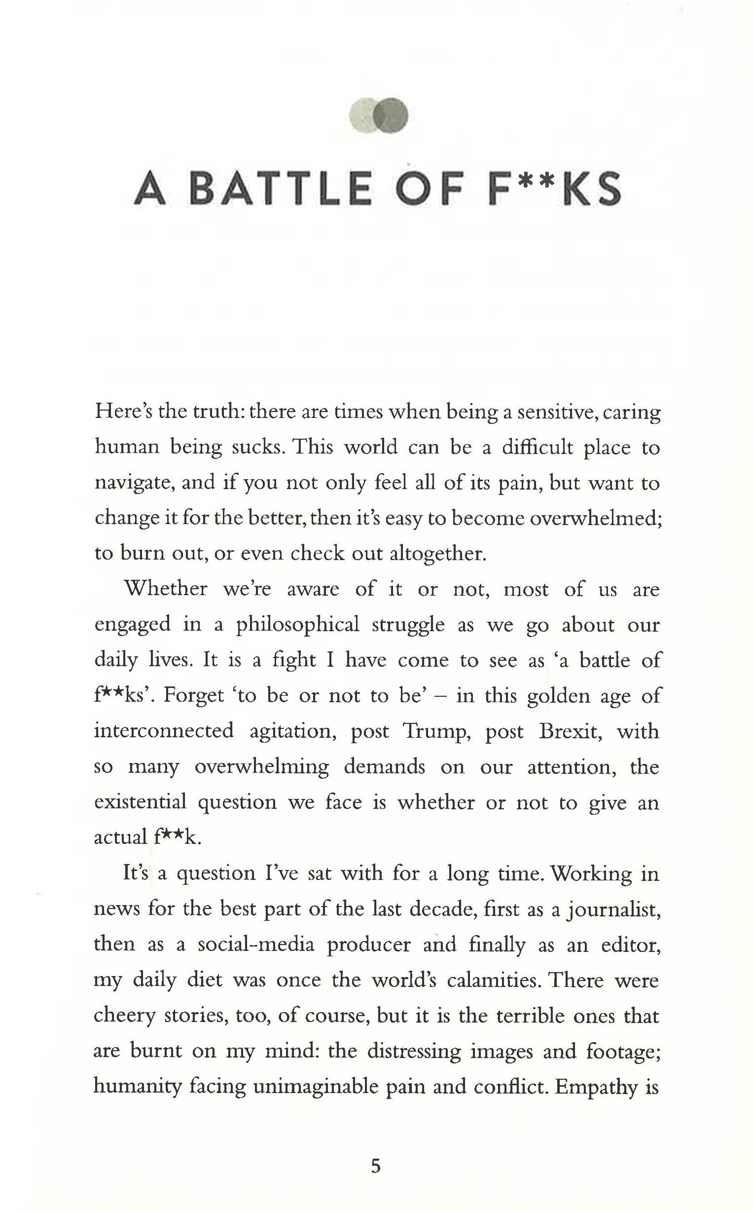 A funny, wise, practical and expressive guide to the subtle art of caring and compassion - also known as 'giving a fuck'!Give A F**k has one important, vital and highly topical theme at its heart: compassion. Otherwise known as caring, AKA giving a fuck. Journalist and life-coach Felicity Morse has turned her smart, witty and informed focus on developing our innate compassion / kindness skills, for the enduring benefit of ourselves, and for the many ways in which we can care for, help, learn from and work with the people and the world around us to achieve profound fulfillment.Give a F**k covers Self, Relationships, Community and Infinity and Beyond and combines warm, witty and philosophical narrative with thought-provoking and easy-to-implement exercises to help us conquer our personal obstacles in the path of developing our most caring selves.***Praise for Give a F**k:'A lovely, inspiring book, full of brilliant advice - a perfect corrective for the state of the world' - India Knight'It really cuts through the honey glaze of self-help and hits you right where you need it' - Holly Bourne, author of How Do You Like Me Now?'Felicity writes with the compassion, assuredness and humour of someone who clearly gets what it can be like to feel too much of everything too much of the time.' - Ruby etc, illustrator and cartoonist