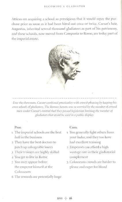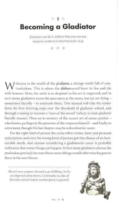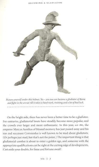 Experience at first hand the spectacular, brutal life and savage death of the most iconic figure of ancient Rome.This manual will take the reader from the first faltering steps over the threshold of gladiator school, and through training to become a `man of the sword'. Find out how to get thousands to idolize you as the strongest, meanest fighter in the Roman empire. Learn why you should become a gladiator, how to join the profession, who will try to kill you (and what with), which arena of the empire is right for you, when and how often you will fight and what happens before, during and after the bout.