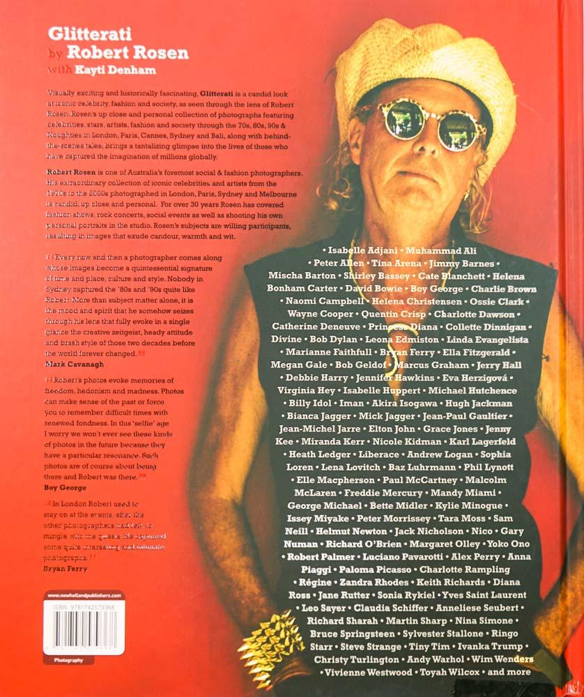 Glitterati is the extraordinary collection of Robert Rosen's photographs of iconic celebrities, stars, artists, fashion and society through the 70s, 80s, 90s, 2000-2015, photographed in London, Paris, New York, Milan & Sydney. A visually exciting collection as well as a candid look as seen through the lens of Robert Rosen - along with fascinating stories from when the photos were taken. Rosen has covered fashion shows, rock concerts and social events, as well as shooting his own collection of personal portraits for the past 30 years - bringing tantalizing shots of the iconic personalities who capture the imagination of millions. Rosen's subjects are willing participants, resulting in images that exude candour, warmth and wit. Some of Rosen's images include: Mick Jagger, Jerry Hall, Sir Paul & Linda McCartney, Boy George, Nina Simone, Debbie Harry, Marianne Faithful, Audrey Hepburn, Nicole Kidman, Diana Ross, David Bowie, Sting, Grace Jones, Kylie Minogue, Michael Hutchence, Cate Blanchett, Sir Elton John, Princess Diana, Karl Lagerfeld, Yoko Ono, Anita Ekberg, Joan Collins, Dame Joan Sutherland, Ella Fitzgerald, Maggie Smith, Luciano Pavarotti, Quentin Crisp and many more...and all the behind-the-scenes insights & stories that go with them. Glitterati is a historically valuable collection of images - looking at the world of celebrity, fashion, fame & society from the 70s to present day - through the eye of Robert's lens giving the public a backstage view of the most exclusive VIP events and a snapshot into the lives of the famous.