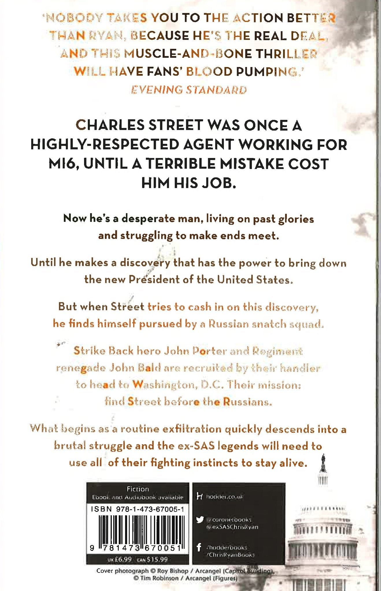 Charles Street was once a highly-respected agent working for MI6, until a terrible mistake cost him his job. Now he's a desperate man, living on past glories and struggling to make ends meet. Until he makes a discovery that has the power to bring down the new President of the United States. But when Street tries to cash in on this discovery, he finds himself pursued by a Russian snatch squad. Strike Back hero John Porter and Regiment renegade John Bald are recruited by their handler to head to Washington, D.C. Their mission: find Street before the Russians. What begins as a routine exfiltration quickly descends into a brutal struggle and the ex-SAS legends will need to use all of their fighting instincts to stay alive. It seems someone is desperate to stop Street from going public with the dossier. Bald and Porter face a race against time to protect him. A startling revelation that leads from the White House to the Kremlin threatens to trigger a new global conflict...