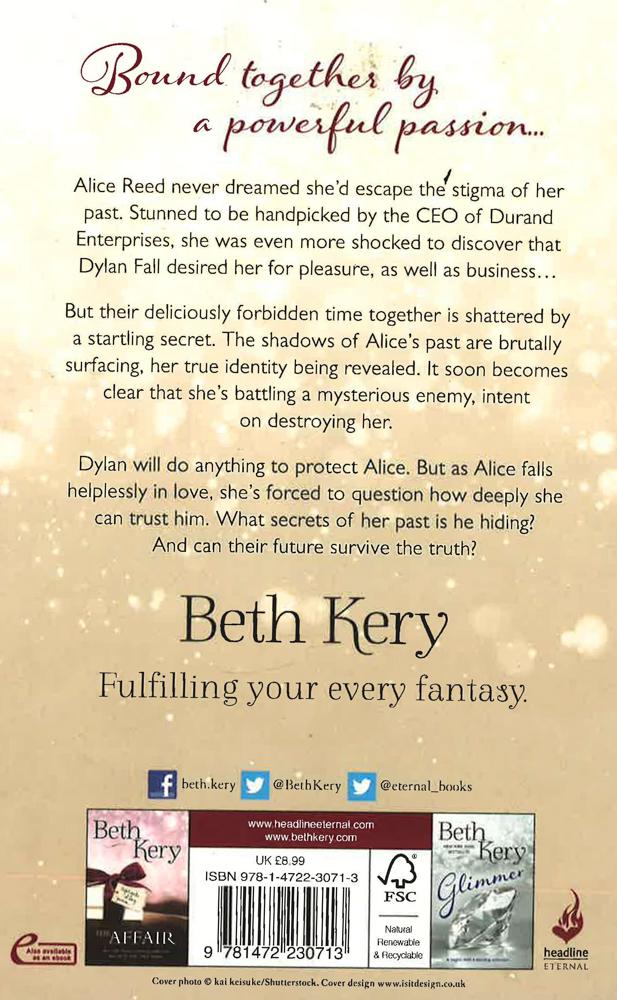 For fans of E. L. James, Sylvia Day, Jodi Ellen Malpas, J. Kenner and Maya Banks. The New York Times bestselling author of the Because You Are Mine series and The Affair, returns to Alice and Dylan's heartstopping love affair in the sequel to Glimmer...Alice Reed never dreamed she'd escape the stigma of her past. Stunned to be handpicked by the CEO of Durand Enterprises, she was even more shocked to discover that Dylan Fall desired her for pleasure, as well as business... But their deliciously forbidden time together is shattered by a startling secret. The shadows of Alice's past are brutally surfacing, her true identity being revealed. It soon becomes clear that she's battling a mysterious enemy, intent on destroying her. Dylan will do anything to protect Alice. But as Alice falls helplessly in love, she's forced to question how deeply she can trust him. What secrets of her past is he hiding? And can their future survive the truth?Alice and Dylan's passionate, explosive romance began in Glimmer.For more electrifying romance, don't miss the other captivating titles by Beth Kery, The Affair, the One Night of Passion series, and her bestselling erotically charged series which began with Because You Are Mine.