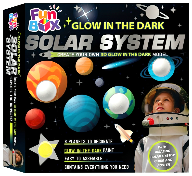 Take a trip into space with this cosmic Glow in the Dark Solar System Fun Box kit.