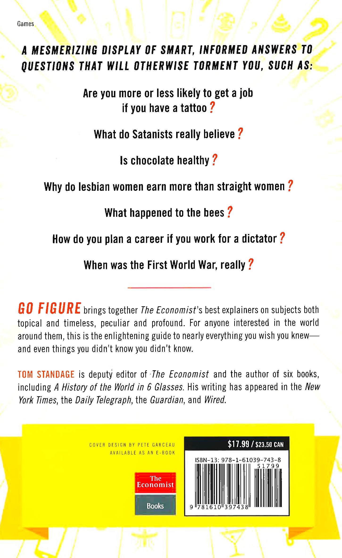 Go Figure: Things You Didn't Know You Didn't Know brings together for the first time the very best explainers and charts, written and created by top journalists to help us understand such brain-bending conundrums as why almost half the population of Korea has one of two surnames, how bitcoin mining works, and the seasonal distribution of dog poo on the streets of New York. Subjects both topical and timeless, profound and peculiar, are explained with The Economist's trademark wit and verve. The Economist Explains and its online sister, the Daily Chart, are the two most popular blogs on The Economist's website. Together, these online giants provide answers to the kinds of questions, quirky and serious, that may be puzzling anyone interested in the world around them. Want to know how a tattoo affects your job prospects, why bees are under threat, or even how different countries spend their money? We have the answers. They are sometimes surprising, often intriguing, and always enlightening.