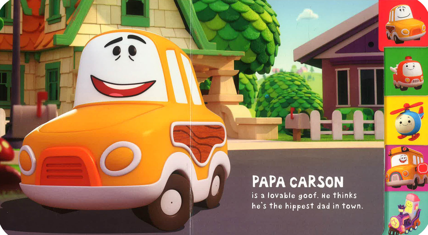 Ride along the winding streets of Bumperton Hills as you meet all of the cars in Cory’s neighborhood. From Cory to Chrissy, this delightful book is filled with things that go!