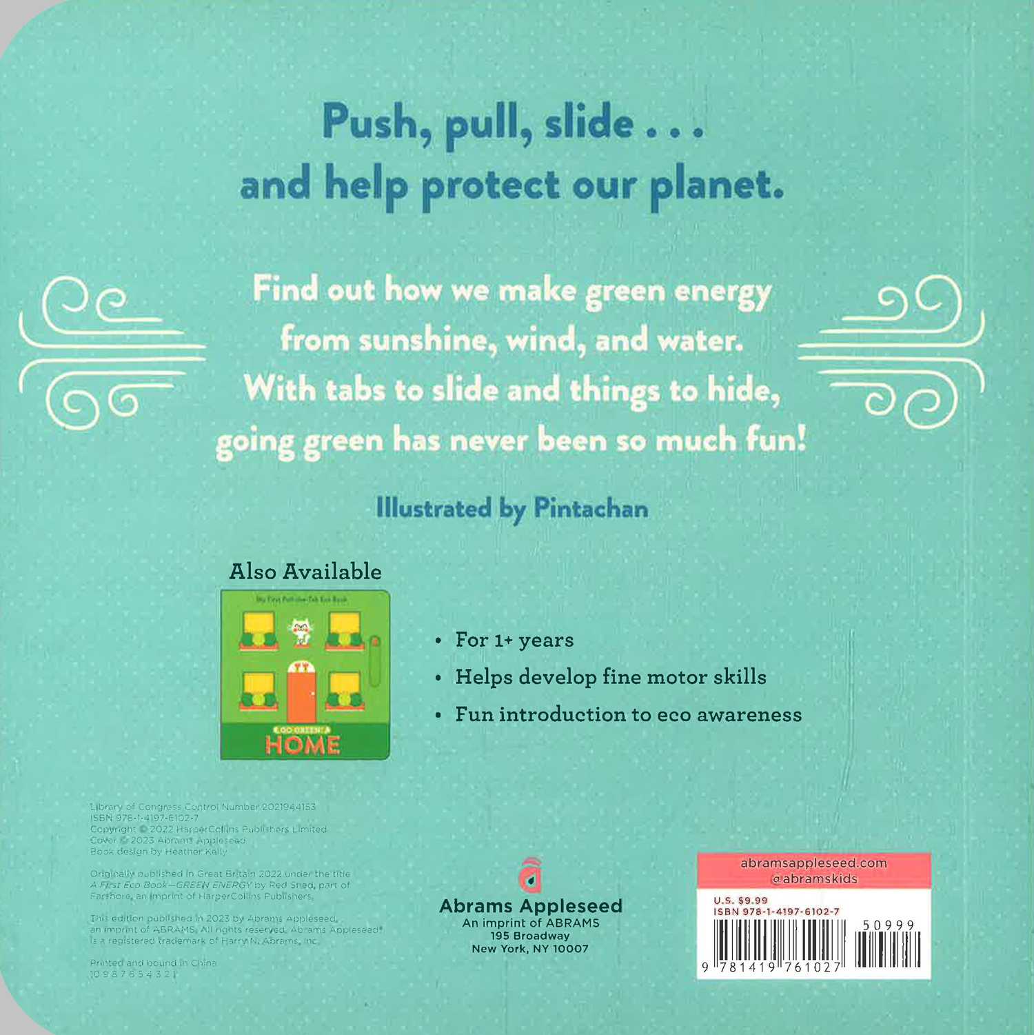 Push, pull, slide . . . and help protect our planet by learning all about renewable energy in this interactive pull-the-tab board book from the Go Green! series, featuring whimsical, vibrant color illustrations by Pintachan.