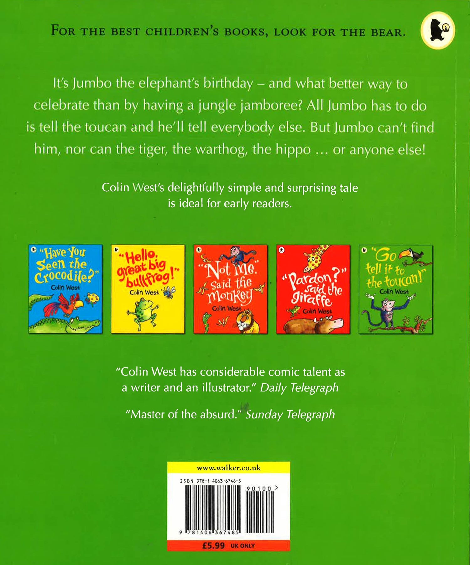 It's Jumbo the elephant's birthday - and what better way to celebrate than by having a jungle jamboree? All Jumbo has to do is tell the toucan and he'll tell everybody else. But where is the toucan? Jumbo can't find him, and nor can the tiger, the warthog, the hippo ...or anyone else! This lively, repetitive text builds up to a very satisfying twist in the tale, which is guaranteed to tickle even the most reluctant reader. Great fun to read aloud, this funny jungle story is perfect for younger readers developing their confidence.