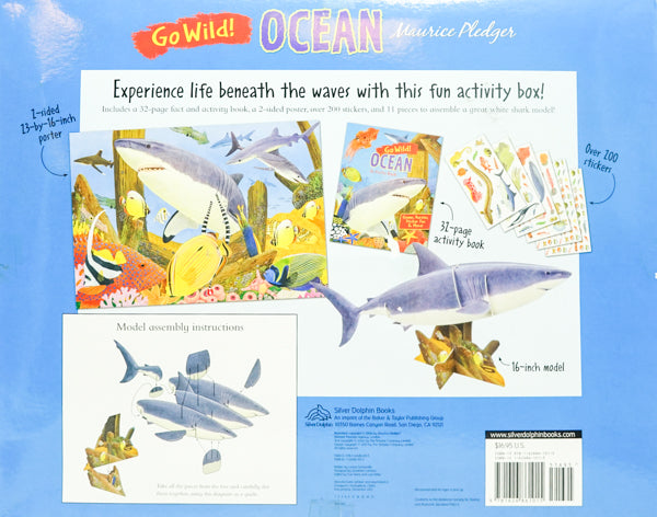 Experience life beneath the waves with this fun activity box! Includes 32-page activity book packed with facts, 2-sided poster and over 200 stickers PLUS 11 pieces to assemble a 16-inch great white shark model.