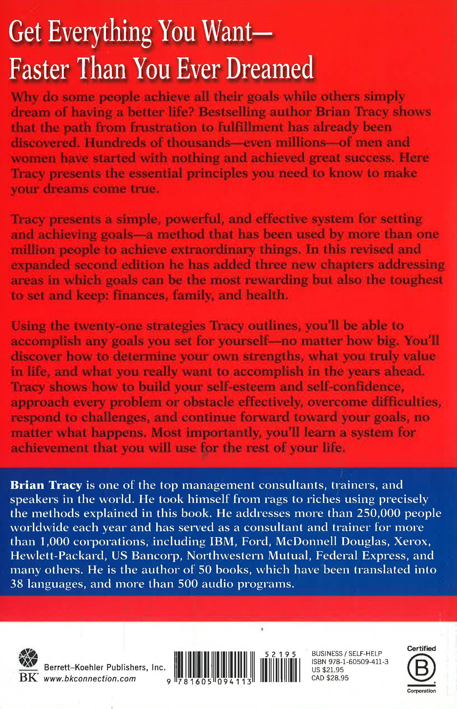 Using the twenty-one strategies Tracy outlines, you’ll be able to accomplish any goal you set for yourself—no matter how big. You’ll discover how to determine your own strengths, what you truly value in life, and what you really want to accomplish in the years ahead. Tracy shows how to build your self-esteem and self-confidence, approach every problem or obstacle effectively, overcome difficulties, respond to challenges, and continue forward toward your goals, no matter what happens. Most importantly, you’ll learn a system for achievement that you will use for the rest of your life.