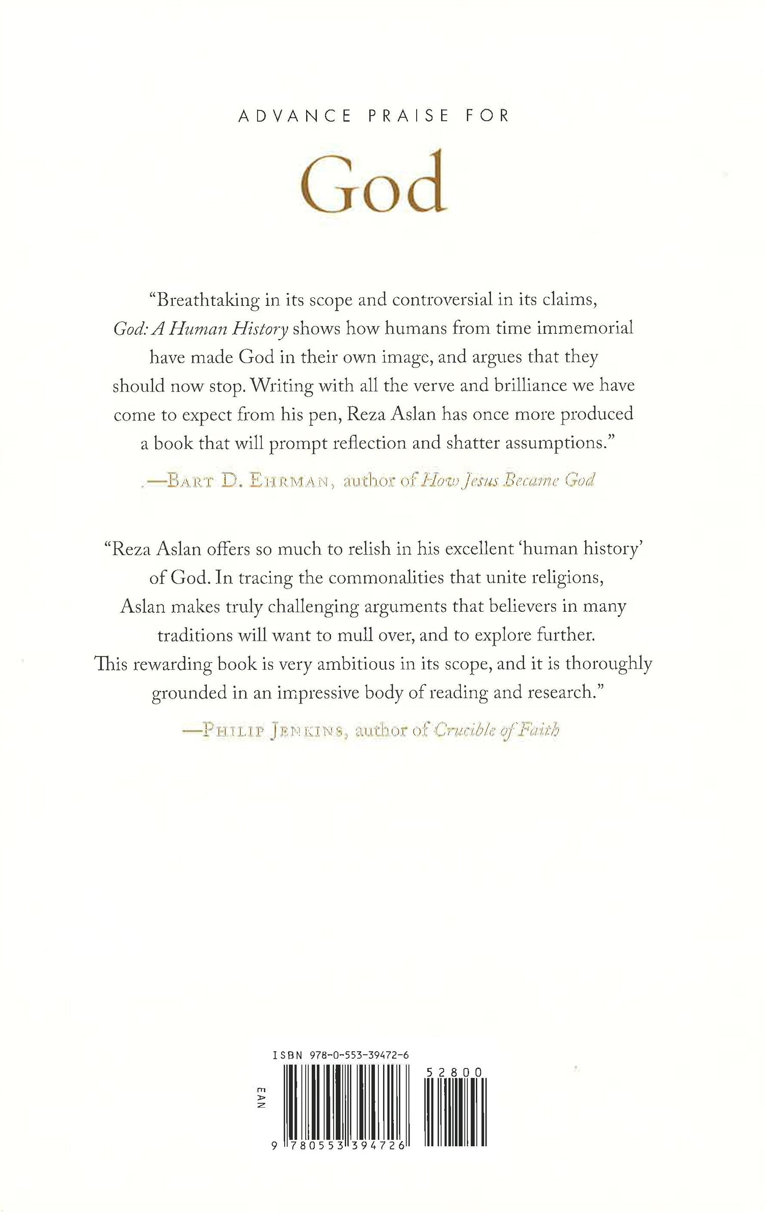 NEW YORK TIMES BESTSELLER - The bestselling author of Zealot and host of Believer explores humanity's quest to make sense of the divine in this concise and fascinating history of our understanding of God. In Zealot, Reza Aslan replaced the staid, well-worn portrayal of Jesus of Nazareth with a startling new image of the man in all his contradictions. In his new book, Aslan takes on a subject even more immense: God, writ large. In layered prose and with thoughtful, accessible scholarship, Aslan narrates the history of religion as a remarkably cohesive attempt to understand the divine by giving it human traits and emotions. According to Aslan, this innate desire to humanize God is hardwired in our brains, making it a central feature of nearly every religious tradition. As Aslan writes, "Whether we are aware of it or not, and regardless of whether we're believers or not, what the vast majority of us think about when we think about God is a divine version of ourselves." But this projection is not without consequences. We bestow upon God not just all that is good in human nature--our compassion, our thirst for justice--but all that is bad in it: our greed, our bigotry, our penchant for violence. All these qualities inform our religions, cultures, and governments. More than just a history of our understanding of God, this book is an attempt to get to the root of this humanizing impulse in order to develop a more universal spirituality. Whether you believe in one God, many gods, or no god at all, God: A Human History will challenge the way you think about the divine and its role in our everyday lives. Praise for God "Timely, riveting, enlightening and necessary."--HuffPost "Tantalizing . . . Driven by [Reza] Aslan's grace and curiosity, God . . . helps us pan out from our troubled times, while asking us to consider a more expansive view of the divine in contemporary life."--The Seattle Times "A fascinating exploration of the interaction of our humanity and God."--Pittsburgh Post-Gazette "[Aslan's] slim, yet ambitious book [is] the story of how humans have created God with a capital G, and it's thoroughly mind-blowing."--Los Angeles Review of Books "Aslan is a born storyteller, and there is much to enjoy in this intelligent survey."--San Francisco Chronicle *This book may have remainder mark.