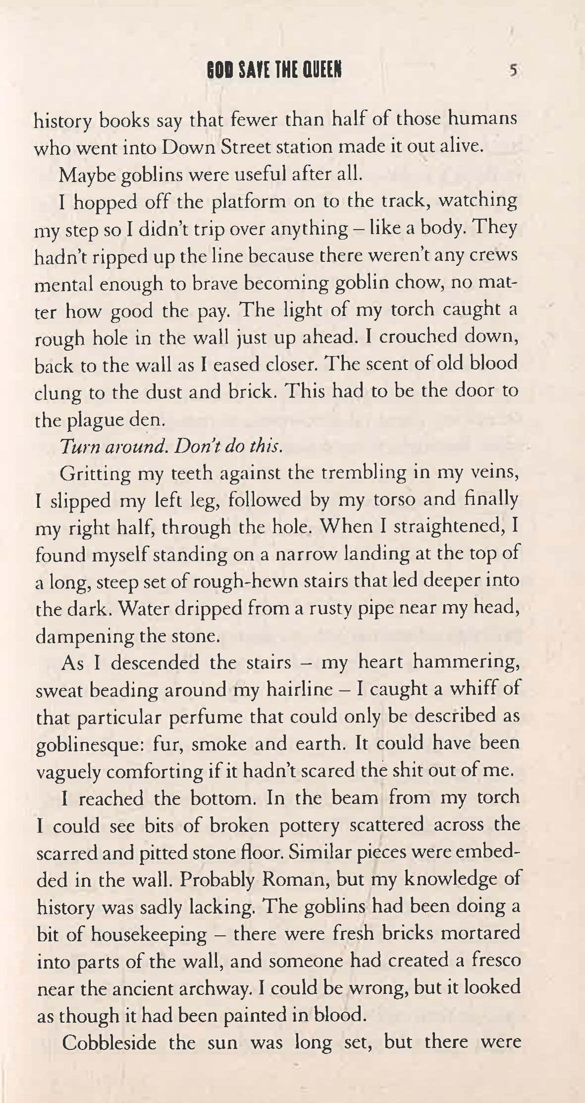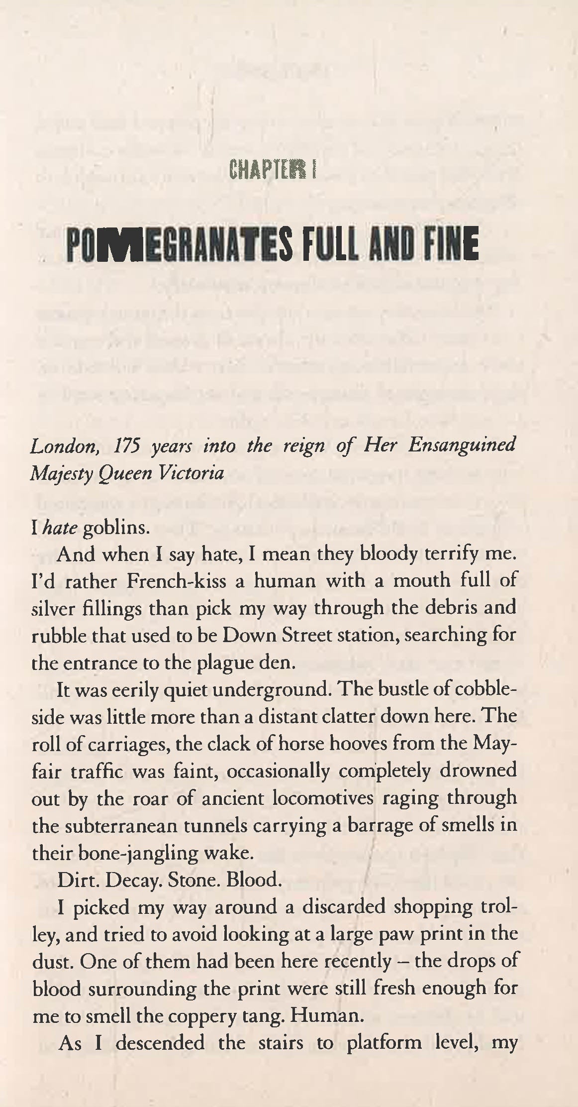 The first in an alternate fantasy series where vampires, werewolves, and goblins rule London.