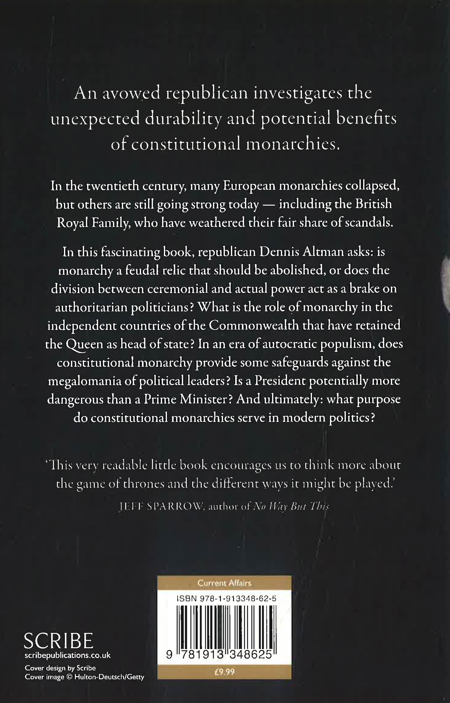 This book suggests that monarchy deserves neither the adulation of the right nor the dismissal of the left. In an era of autocratic populism, does constitutional monarchy provide some safeguards against the megalomania of political leaders? Is a President Boris potentially more dangerous than a Prime Minister Boris?