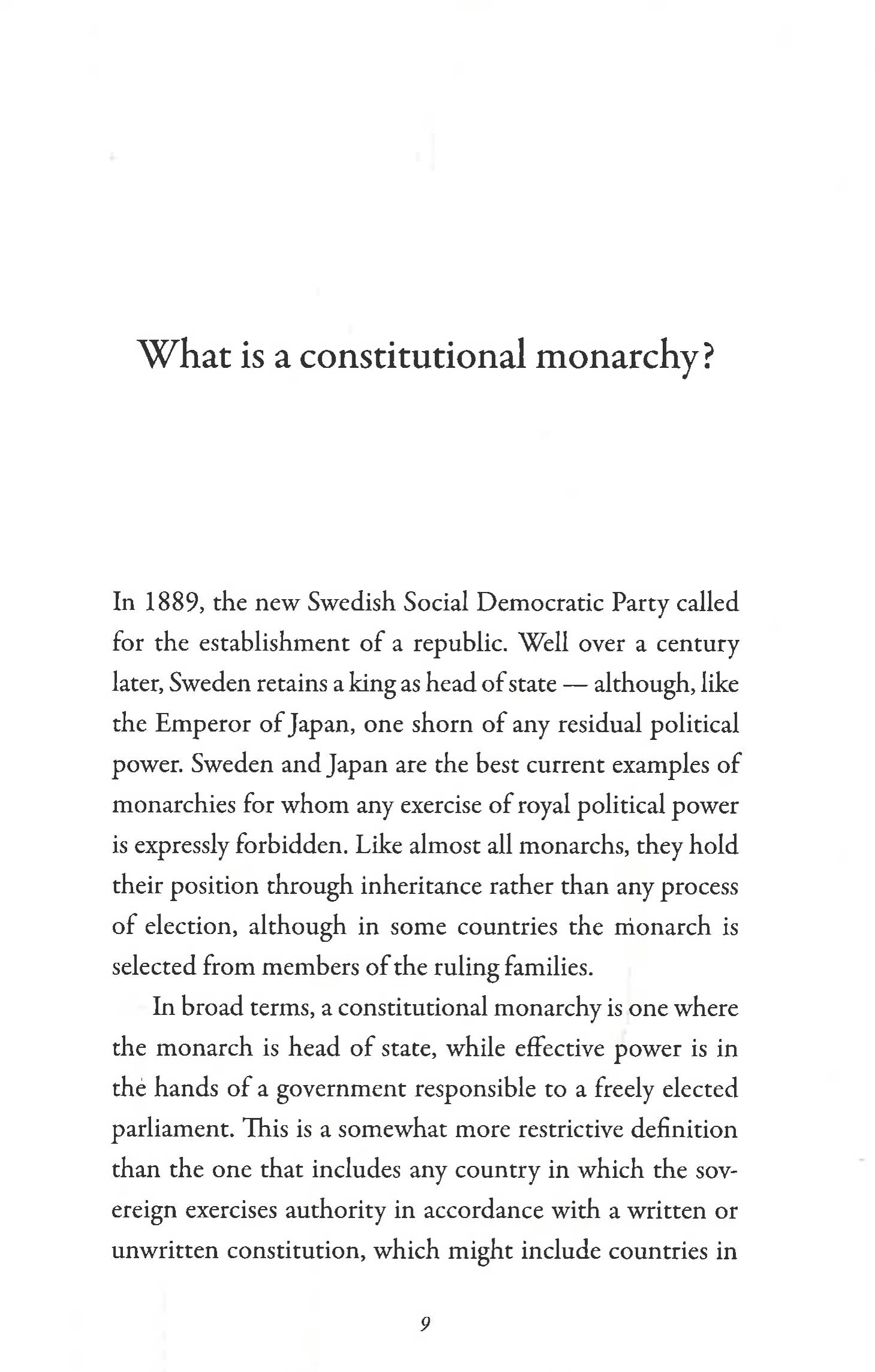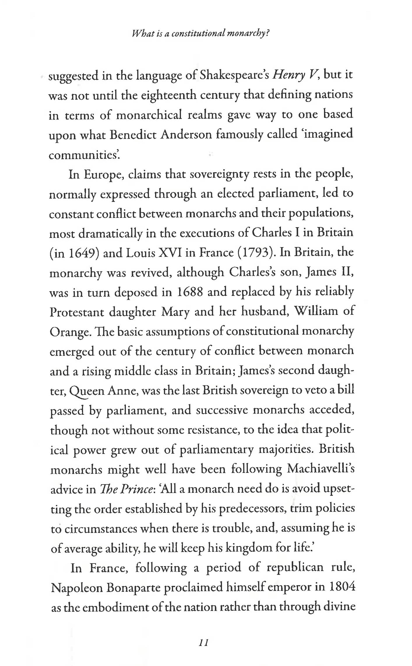 When he was deposed in Egypt in 1952, King Farouk predicted that there would be five monarchs left at the end of the century: the kings of hearts, diamonds, clubs, spades, and of England. To date, his prediction has proved wrong, and while the twentieth century saw the collapse of monarchies across Europe, many democratic societies have remained monarchies.