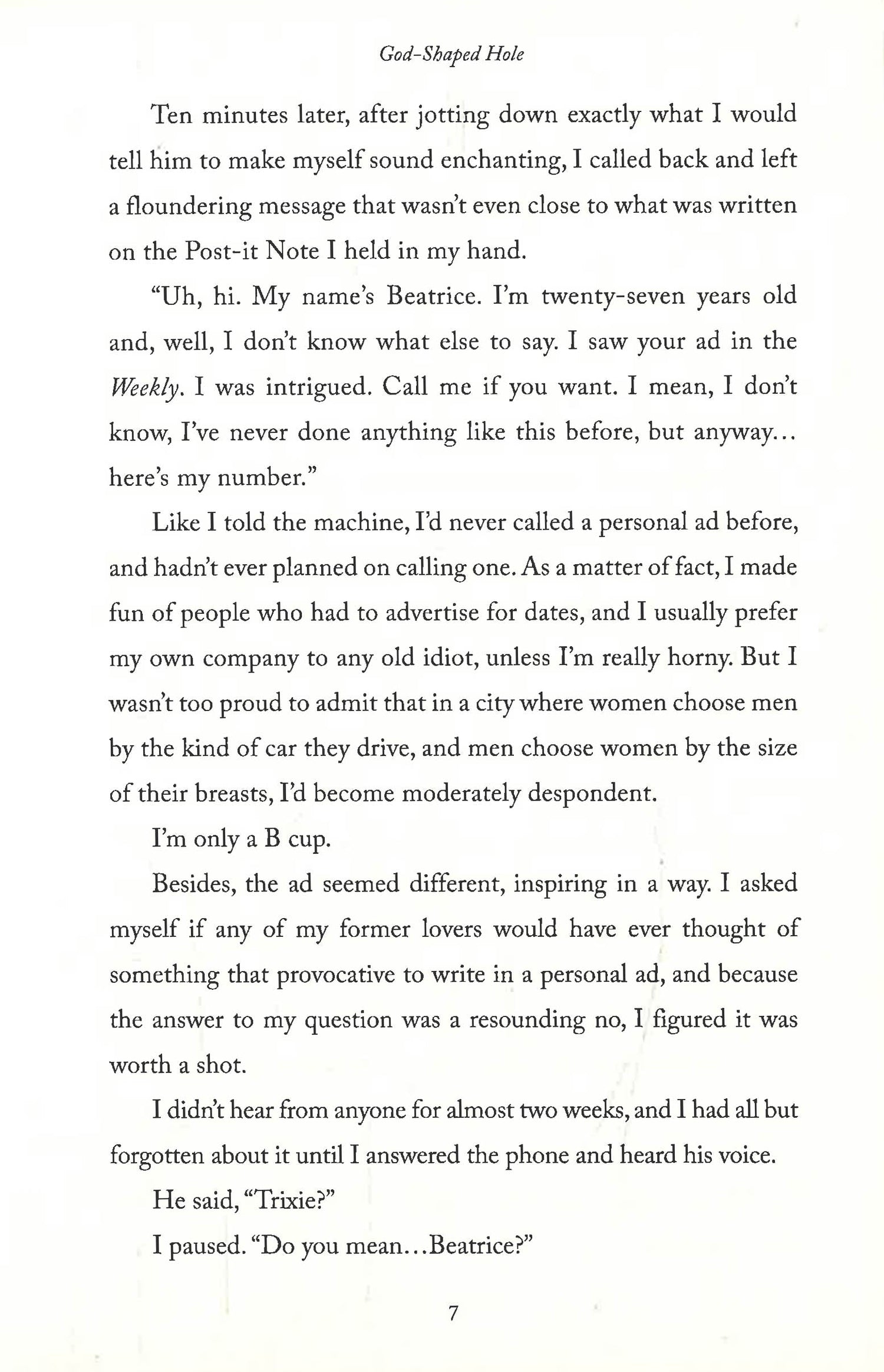 "God-Shaped Hole will change you as a reader, writer and human. It is rare books like this one that remind me why I fell in love with the written word."--Colleen Hoover