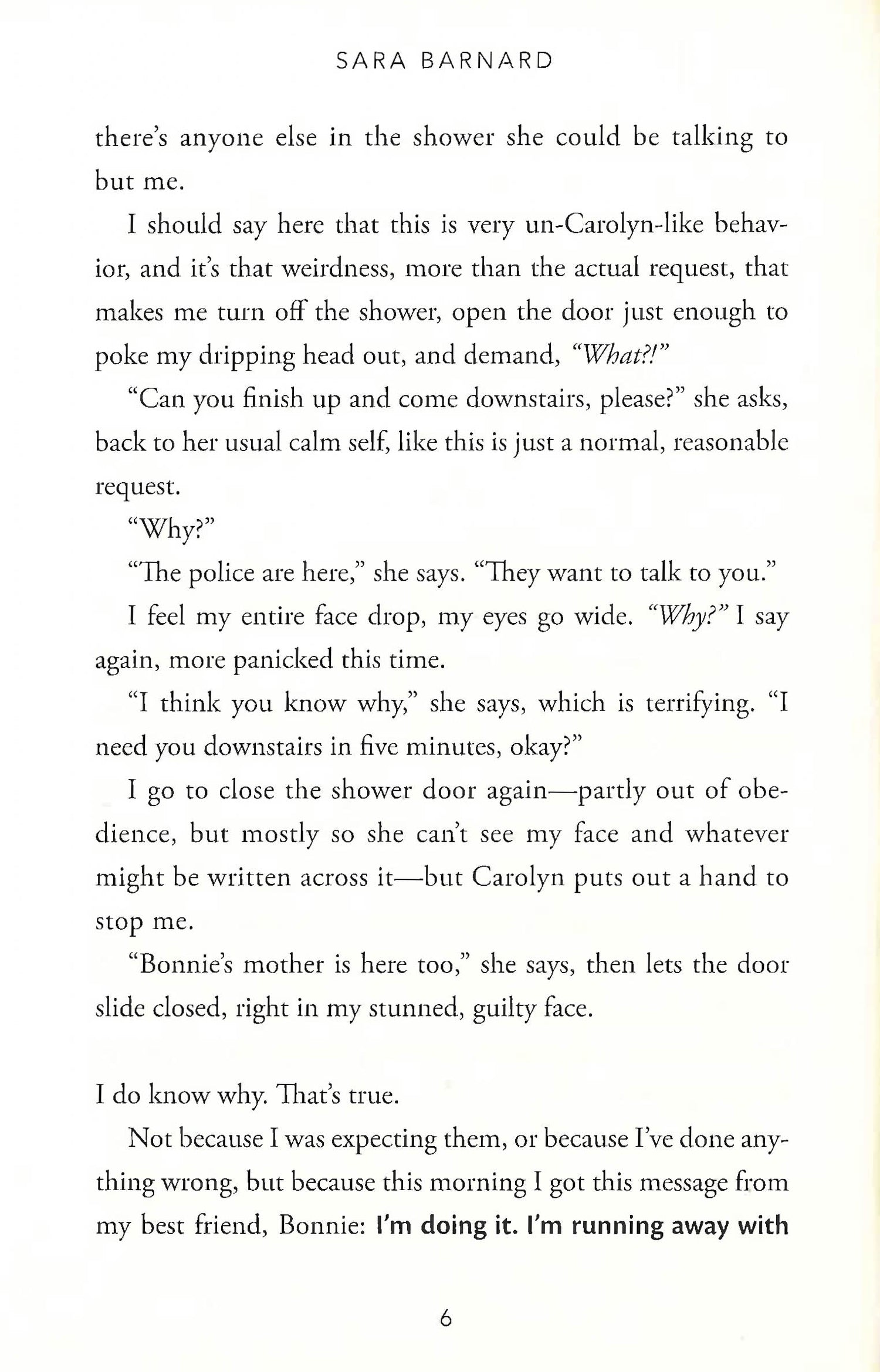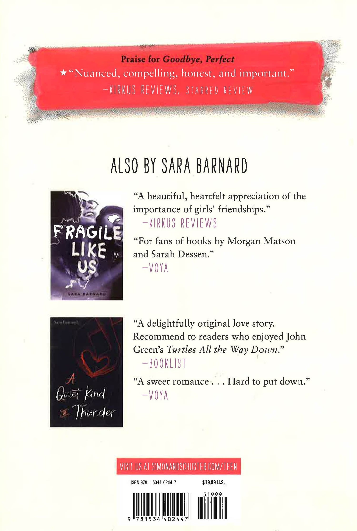 A YALSA 2020 Quick Pick for Reluctant Young Adult Readers Friendship bonds are tested and the very nature of loyalty is questioned in this lyrical novel about a teen whose best friend runs away with her teacher after suffering the effects of too much academic pressure. Perfect for fans of Morgan Matson and Jennifer Niven. Eden McKinley knows she can't count on much in this world, but she can depend on Bonnie, her solid, steady, straight-A best friend. So it's a bit of a surprise when Bonnie runs away with the boyfriend Eden knows nothing about five days before the start of their final exams. Especially when the police arrive on her doorstep and Eden finds out that Bonnie's boyfriend is actually their music teacher, Mr. Cohn. Sworn to secrecy and bound by loyalty, only Eden knows Bonnie's location, and that's the way it has to stay. There's no way she's betraying her best friend. Not even when she's faced with police questioning, suspicious parents, and her own growing doubts. As the days pass and things begin to unravel, Eden is forced to question everything she thought she knew about the world, her best friend, and herself. In this touching and insightful novel, bestselling author Sara Barnard explores just what can happen when the pressure one faces to be "perfect" leads to drastic fallout.