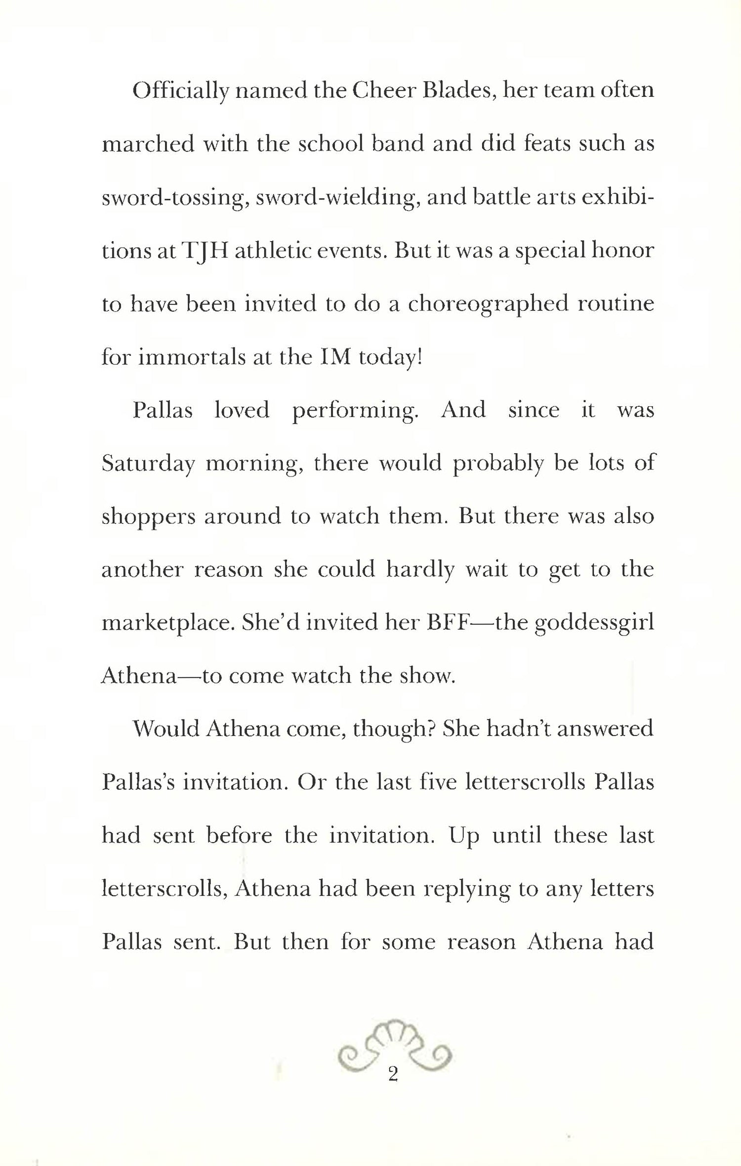 Pallas, the daughter of Triton and messenger of the sea, enrolls at Mount Olympus Academy in this twenty-first Goddess Girls adventure! Mortal girl Pallas can?t wait to go show off her swordplay skills at Mount Olympus Academy. As a member of the Cheer Blades, she is hoping to impress her childhood friend, Athena?until she learns Athena has a new group of BFFs in the Goddess Girls. Pallas hopes she can win Athena?s attention at the upcoming Greek Festival battle reenactment competition?and help Pallas prove she is just as good as any boy her age! But Athena is having her own jealousy issues, thanks to her new baby sister. Can these old BFFs work together to help each other out? *This book may have a remainder mark