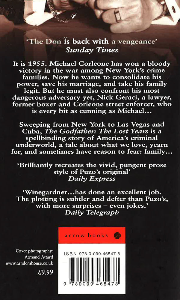 The Godfather: The Lost Years is not just a sequel. A magnificent novel in its own right, by an acclaimed young American novelist, it traces the nexus of ambitious, audacious decisions that Michael Corleone implements, their ultimate failure, and, after the Family's literal and figurative years in the wilderness (of Las Vegas), Michael's literal, physical return to New York, and his attempts to regain control there.