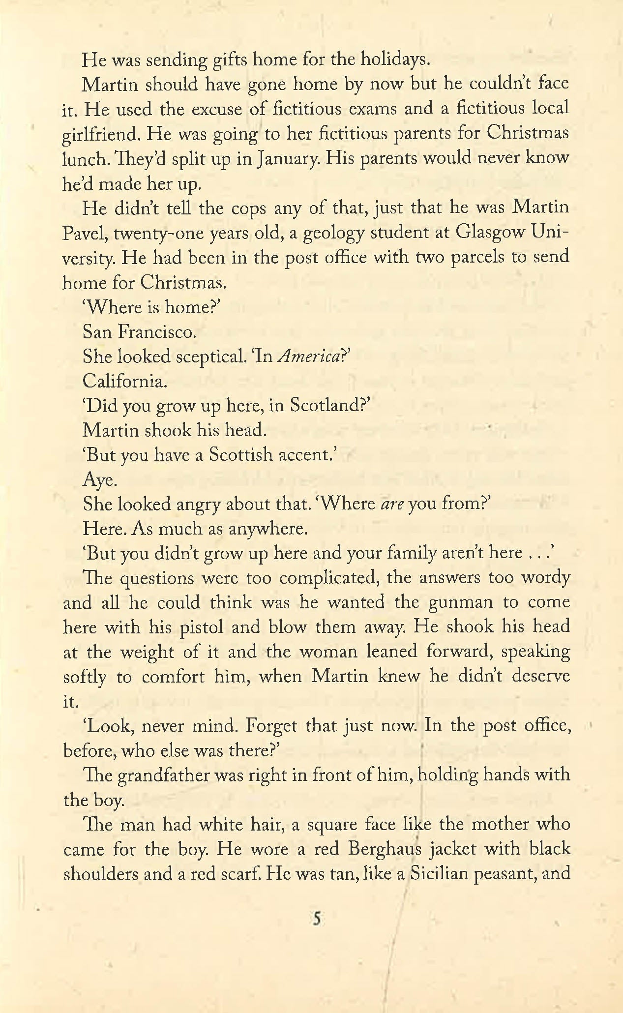 It's the week before Christmas when a lone robber bursts into a busy Glasgow post office carrying an AK-47. An elderly man suddenly hands his young grandson to a stranger and wordlessly helps the gunman fill bags with cash, then carries them to the door. He opens the door and bows his head; the robber fires off the AK-47, tearing the grandfather in two.