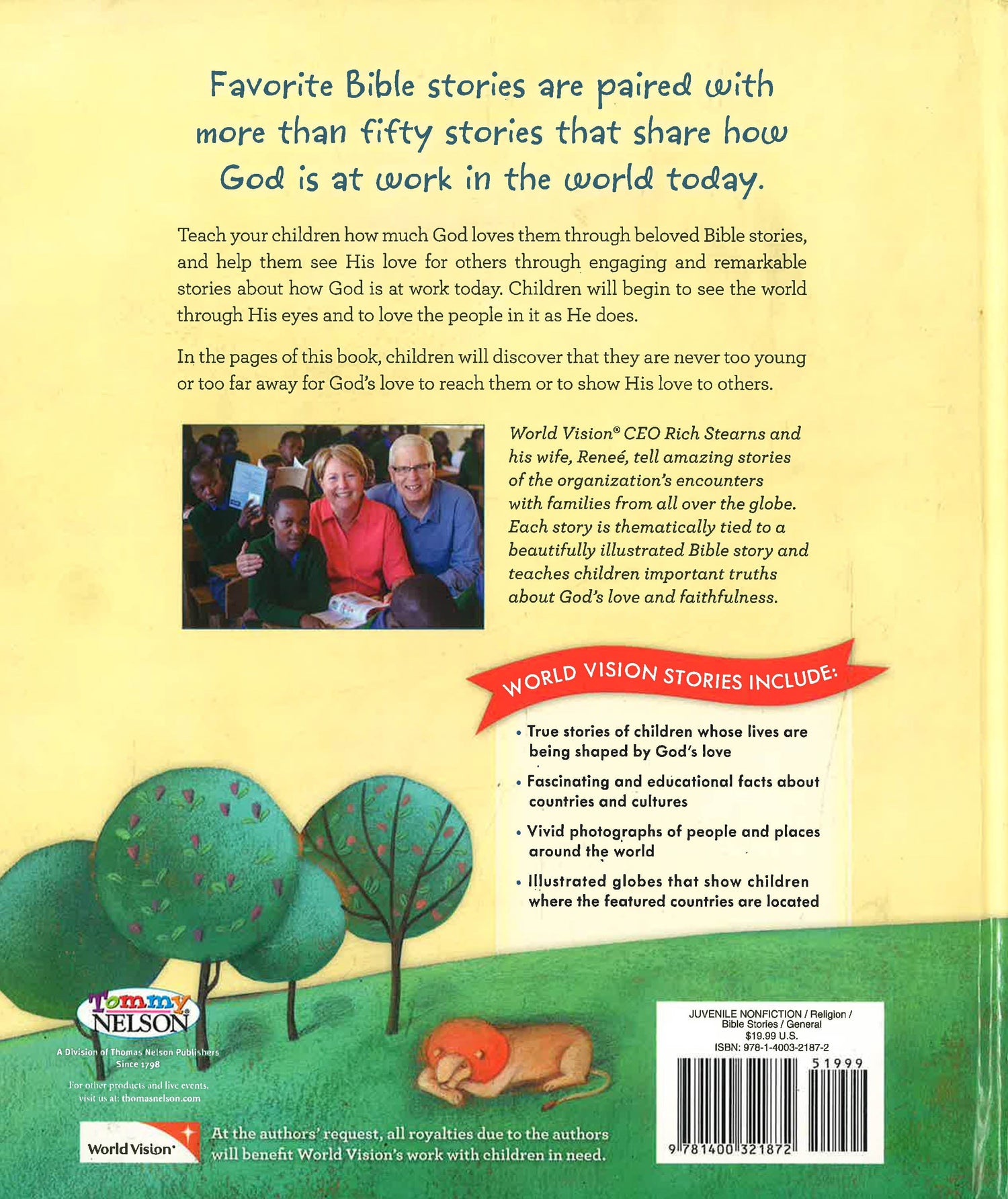 God's Love for You Bible Storybook teaches favorite Bible stories followed by real stories of people sharing God’s love. Kids will see how they can learn from and help people all over the world. This book will help raise up a generation of generous, global Christians who are active in their communities and their world.