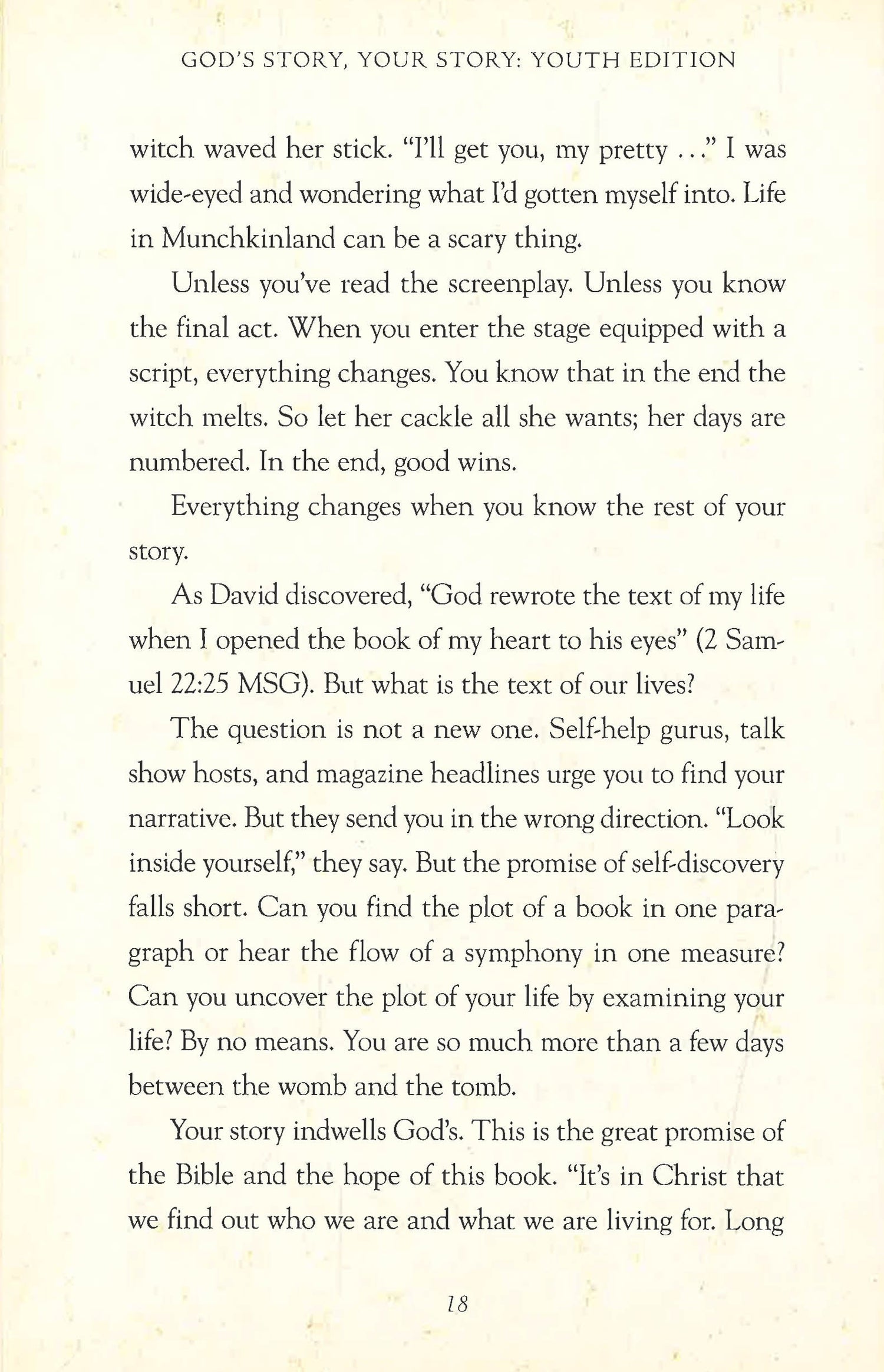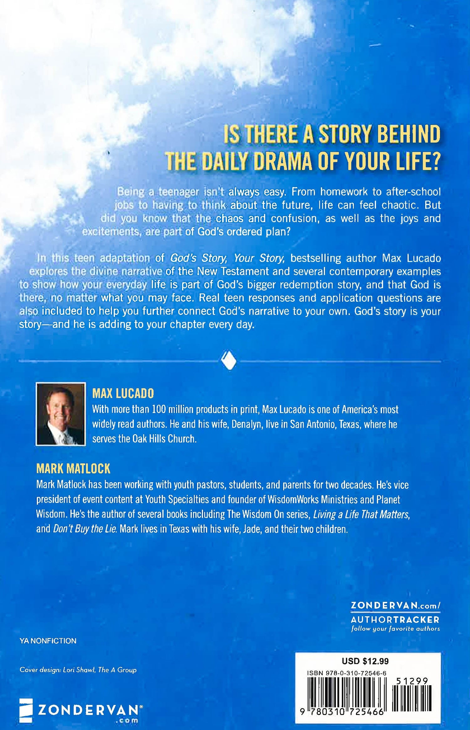 Is there a story behind the daily drama of your life? Being a teenager isn’t always easy. From homework to after-school jobs to having to think about the future, life can feel chaotic. But did you know that the chaos and confusion, as well as the joys and excitements you experience, are part of God’s ordered plan? In this teen adaptation of God’s Story, Your Story, bestselling author Max Lucado explores the divine narrative in the New Testament, as well as several contemporary examples, to show how your everyday life is part of God’s bigger redemption story, and that God is there, no matter what you may face in your life. Real teen responses and real-life application questions are also included to help you further connect God’s narrative to your own. Because God’s story is your story—and he is adding to your chapter every day.