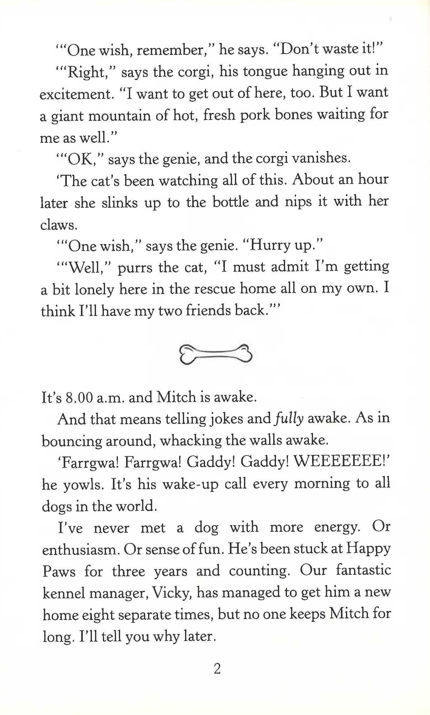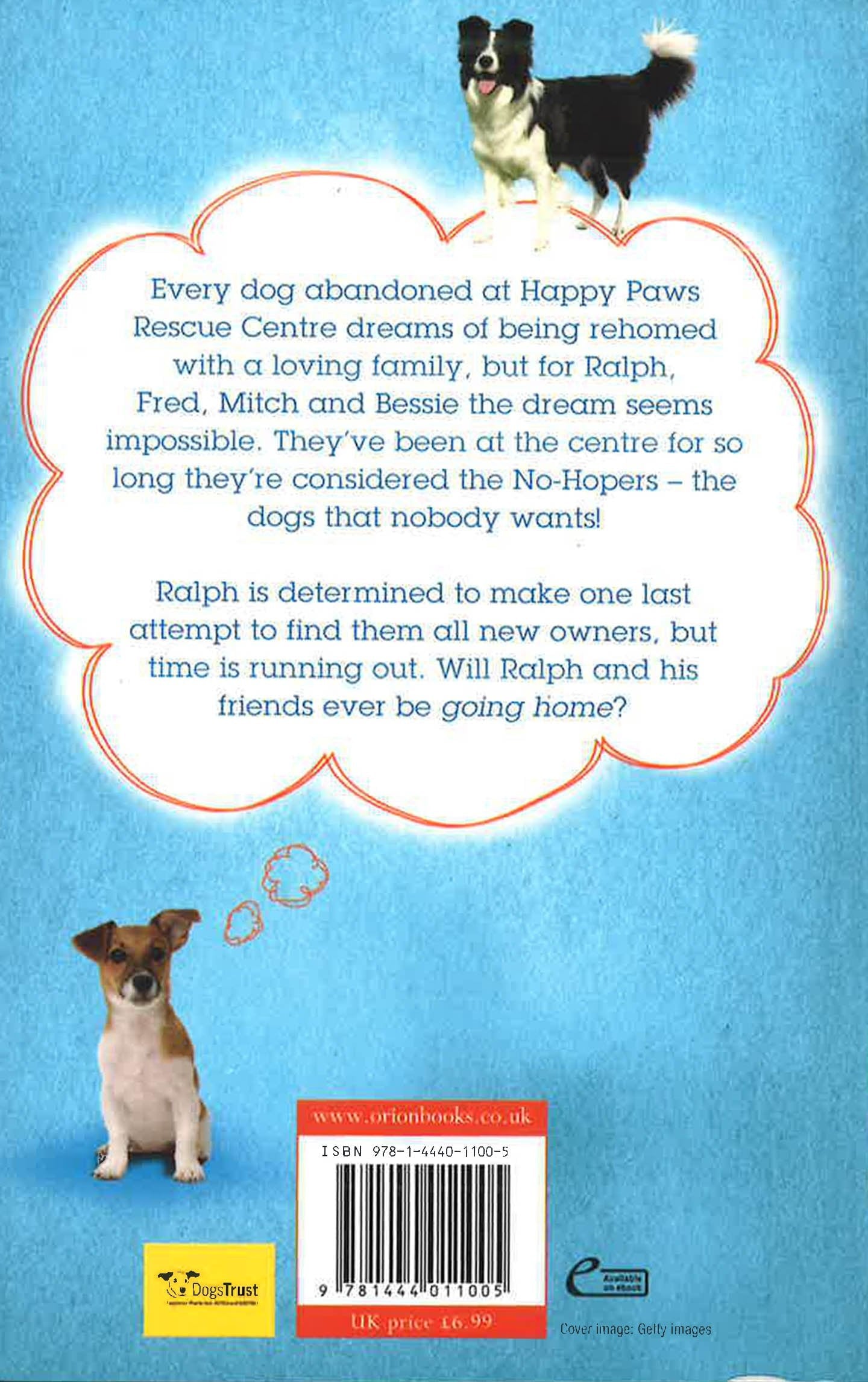 At the Happy Paws Rescue Centre, every pet dreams of one thing: going home. But Ralph, Mitch, Bessie and Fred are the no-hopers: dogs so difficult or troublesome they aren't expected to ever go home. Ralph's face is scarred. Bessie can't stand to be touched. Mitch can't stop chasing cats and Fred ...has just given up. Who'd want to adopt any of them instead of a cute little puppy? But when Happy Paws reviews its policy of never putting an unwanted pet down, time starts running out for the dogs. Can they prove that they're worth a second chance? Will there be hope for the no-hopers after all?