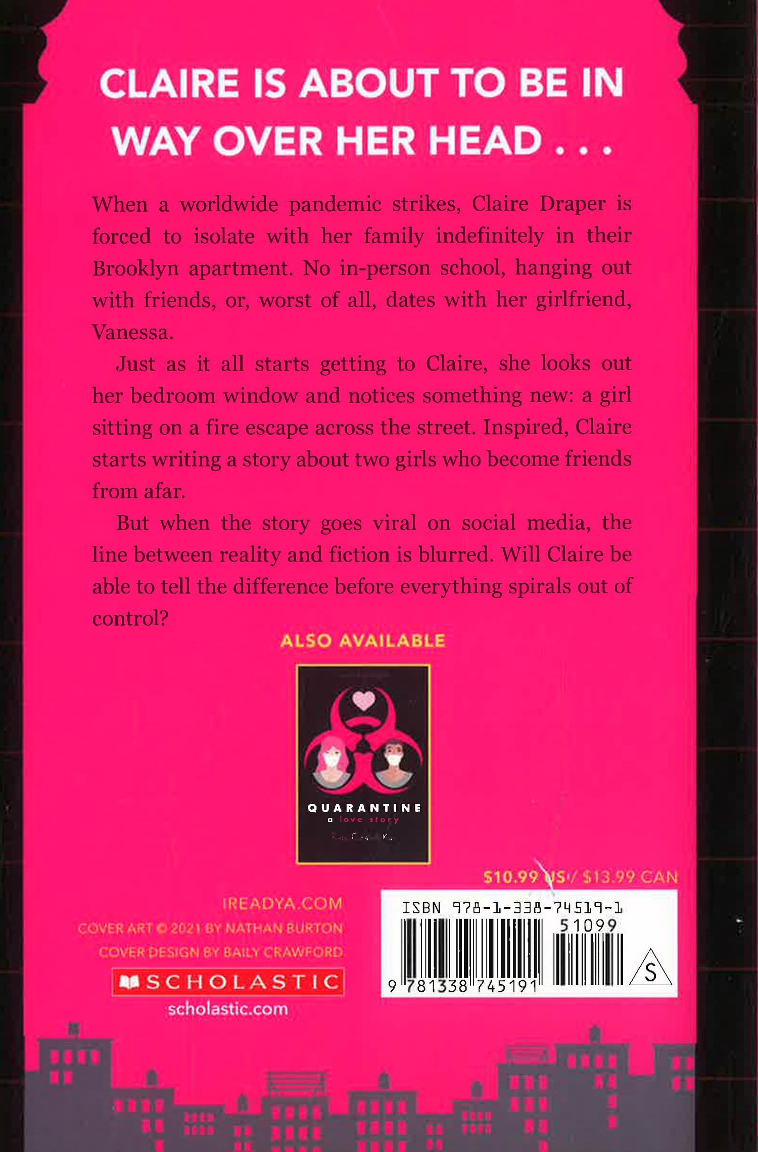 At first it's not so bad, but the longer the pandemic lasts, the more Claire feels her priorities changing. That's when she looks outside her bedroom window and notices something new: A girl who lives in the building across the street sitting on her fire escape.
