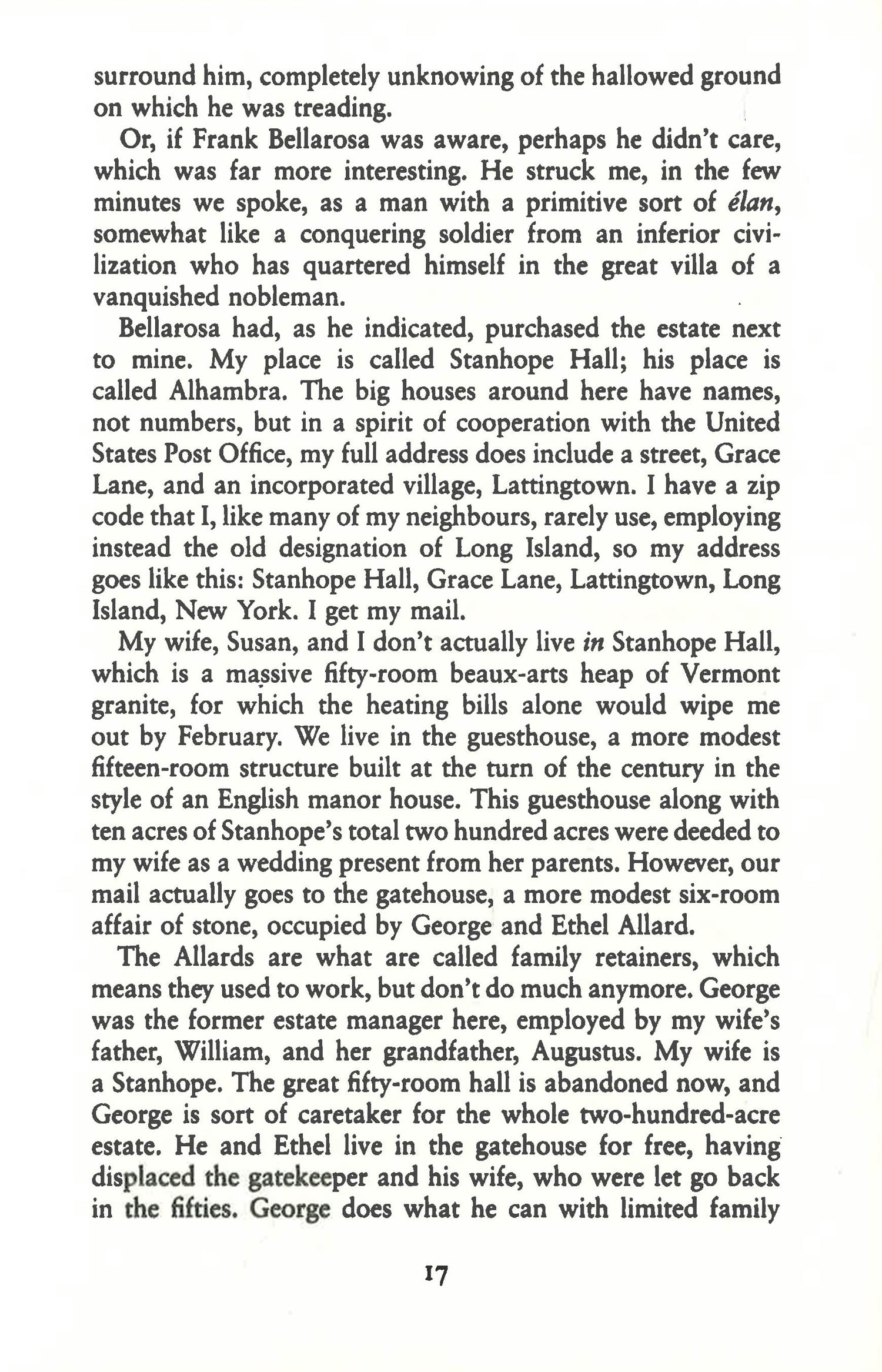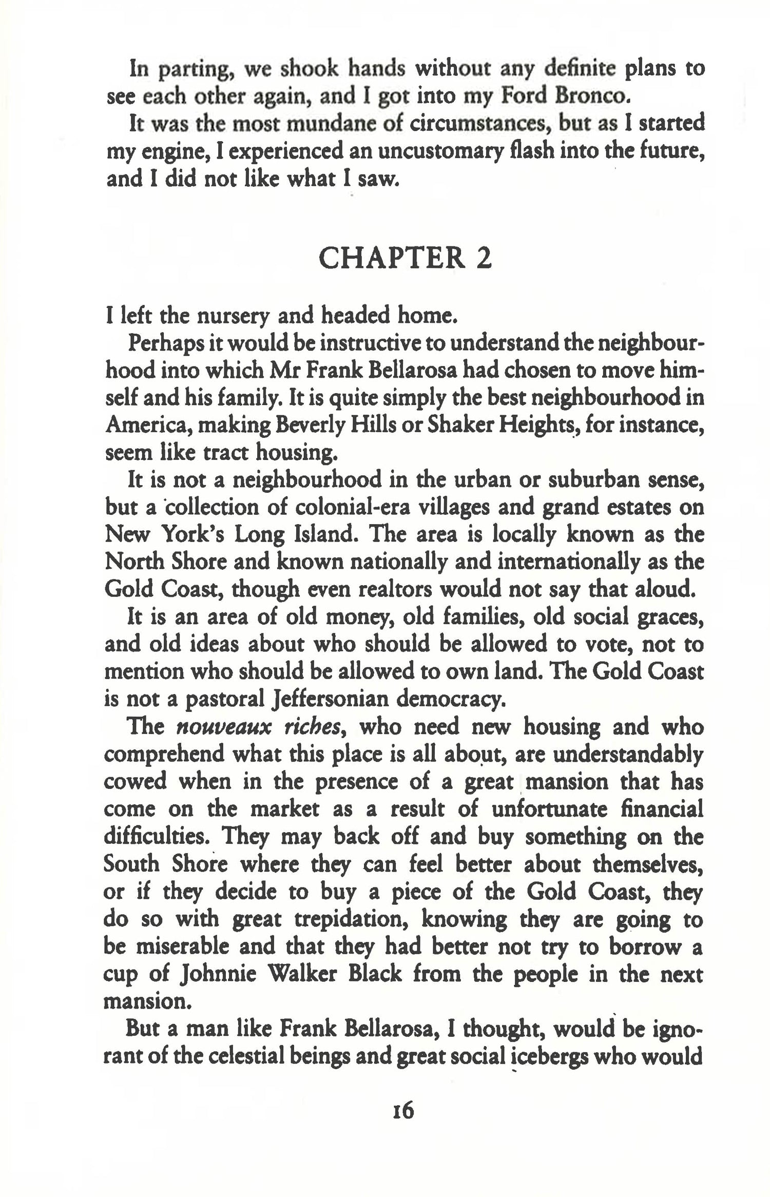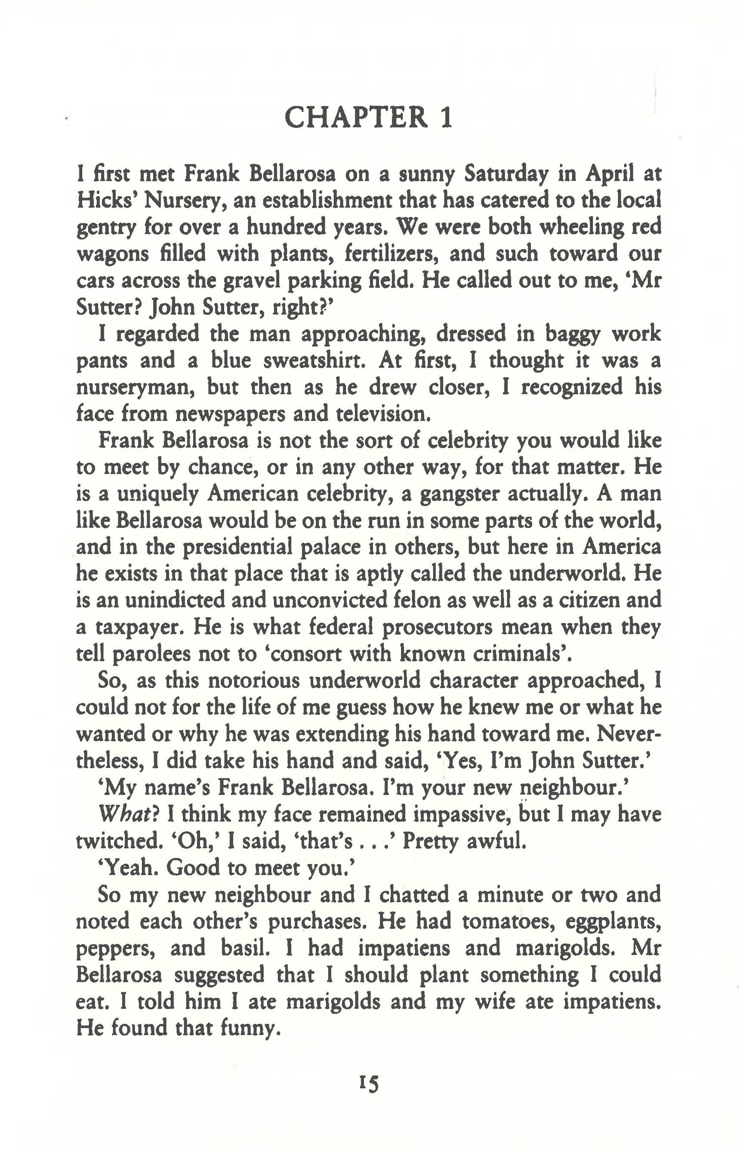 The upmarket and salubrious area of Long Island is the stamping ground for a dying breed of America's super-rich. It is also the residence of John Sutter, lawyer - very top-drawer, old money, right clubs - and his sensual wife, Susan. Their lives are about to be turned dramatically upside down by their new 'next-door' neighbour - a certain Mr Frank Bellarosa, top Mafia don and master manipulator. It is he who will impress upon them a rule much older than the archaic etiquette of the old-money set: a favour accepted is a favour owed.
