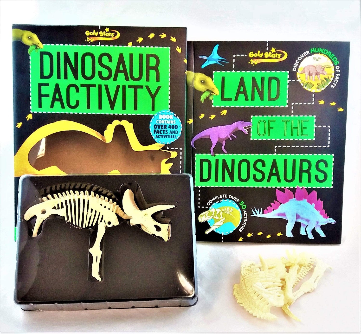 Complete over 50 activities, discover hundreds of facts, and build your own triceratops skeleton model with this Gold Stars Dinosaur Factivity set!