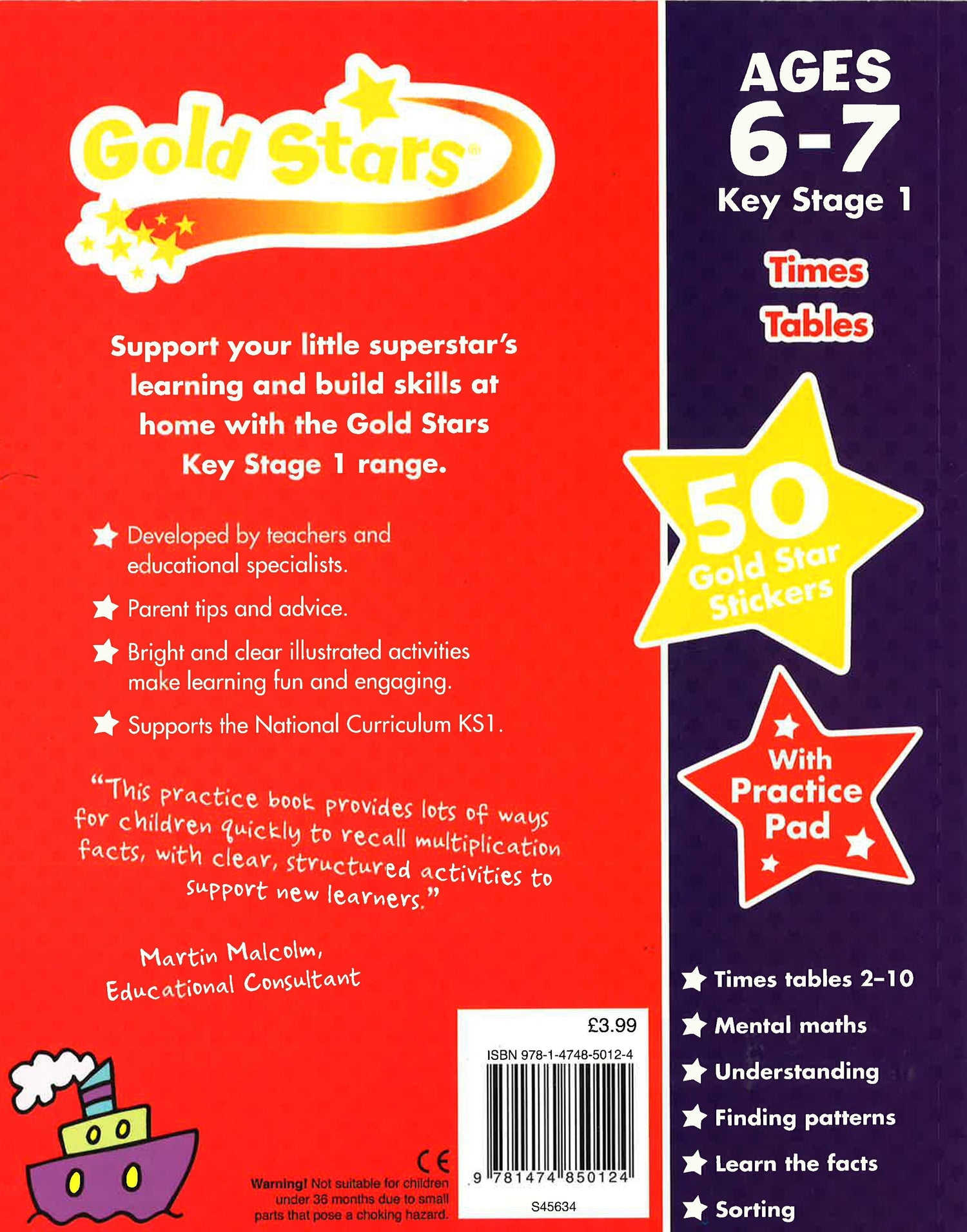 Gold Stars Times Tables Ages 6-7 comes with 50 gold star stickers and a fun practice pad for your little one to learn how to do their times tables.