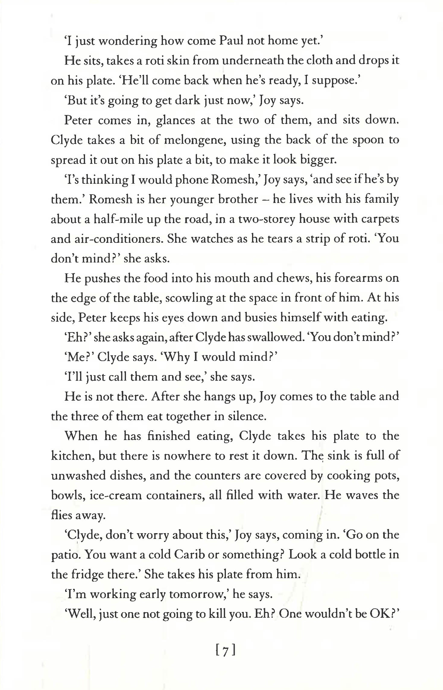 Rural Trinidad: a brick house on stilts surrounded by bush; a family, quietly surviving, just trying to live a decent life. Clyde, the father, works long, exhausting shifts at the petroleum plant in southern Trinidad; Joy, his wife, looks after the home. Their two sons, thirteen years old, wake early every morning to travel to the capital, Port of Spain, for school. They are twins but nothing alike: Paul has always been considered odd, while Peter is widely believed to be a genius, destined for greatness.