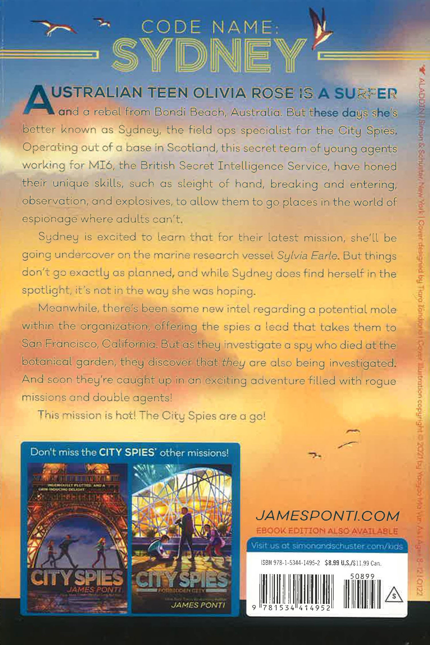 Fourteen-year-old Sydney is a surfer and a rebel from Bondi Beach, Australia. She’s also a field ops specialist for the City Spies. Sydney is excited to learn that she’ll be going undercover on the marine research vessel the Sylvia Earle. But things don’t go exactly as planned, and while Sydney does find herself in the spotlight, it’s not in the way she was hoping.