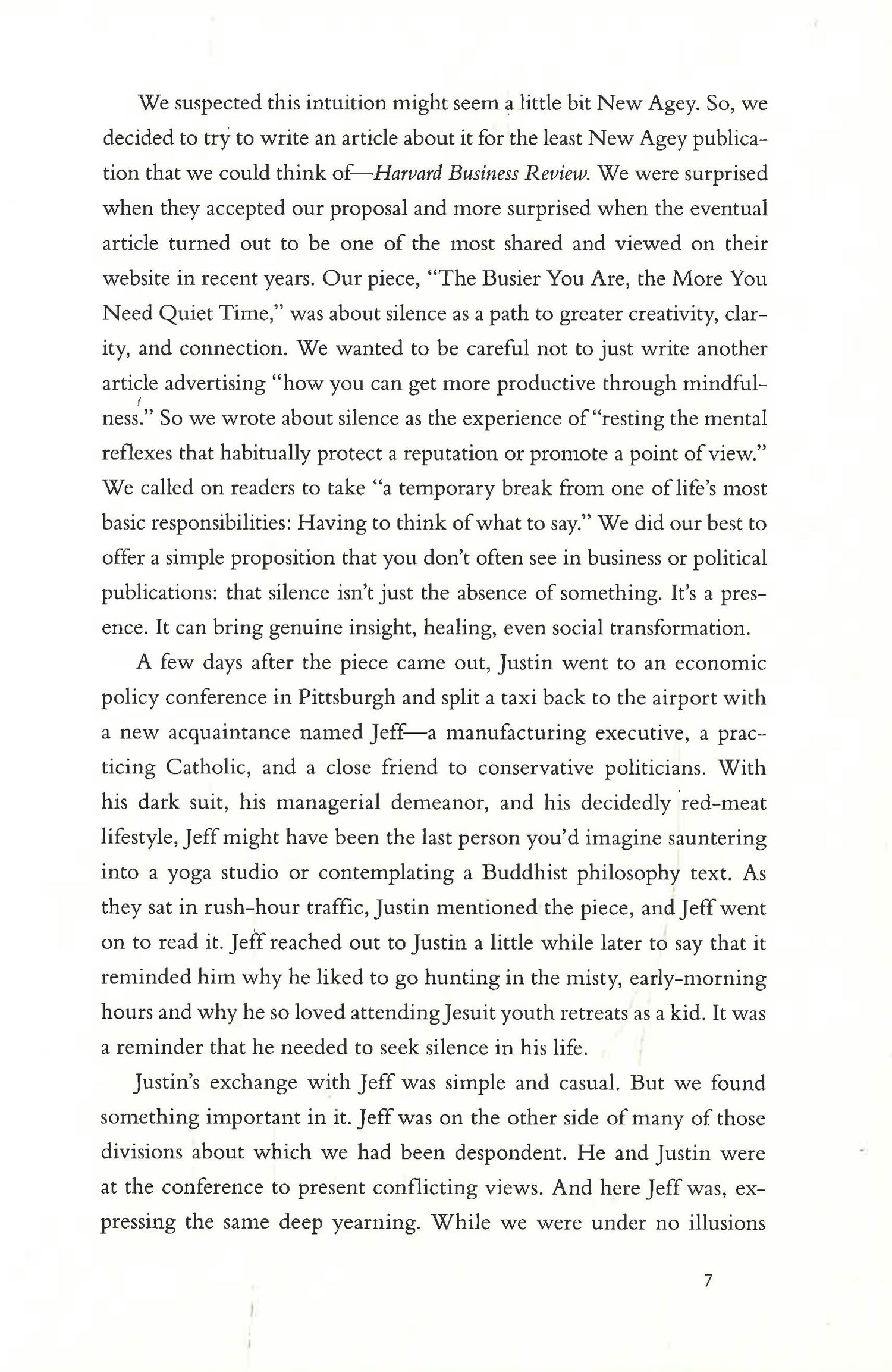Justin Zorn and Leigh Marz take us on an unlikely journey—from the West Wing of the White House to San Quentin’s death row; from Ivy League brain research laboratories to underground psychedelic circles; from the temperate rainforests of Olympic National Park to the main stage at a heavy metal festival—to explore the meaning of silence and the art of finding it in any situation.