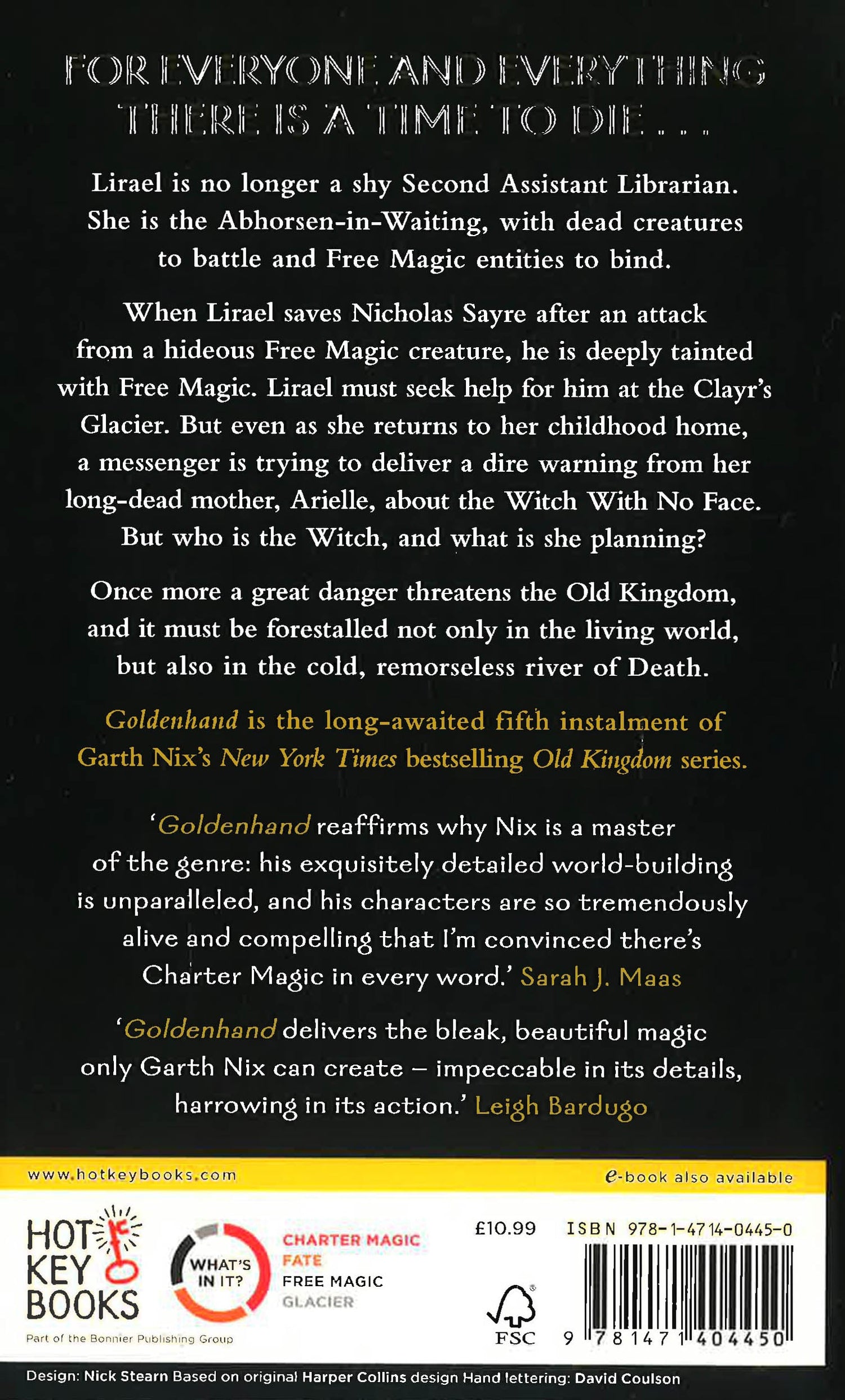 Goldenhand is the long-awaited fifth installment of Garth Nix's New York Times bestselling Old Kingdom series Lirael is no longer a shy Second Assistant Librarian. She is the Abhorsen-in-Waiting, with dead creatures to battle and Free Magic entities to bind.