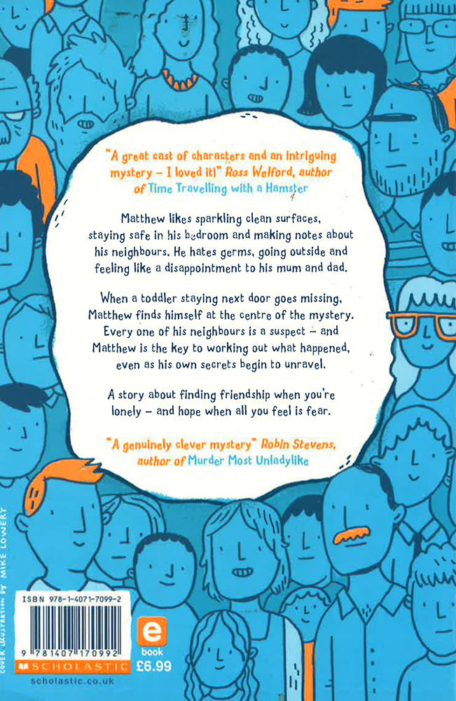 A story about finding friendship when you're lonely - and hope when all you feel is fear. Twelve-year-old Matthew is trapped in his bedroom by crippling OCD, spending most of his time staring out of his window as the inhabitants of Chestnut Close go about their business.Until the day he is the last person to see his next door neighbour's toddler, Teddy, before he goes missing. Matthew must turn detective and unravel the mystery of Teddy's disappearance - with the help of a brilliant cast of supporting characters. Page-turning, heartbreaking, but ultimately life-affirming, this story is perfect for fans of Can You See Me, The Curious Incident of the Dog in the Night Time and Wonder.It is a book that will make you laugh and cry. "A genuinely clever mystery" - Robin Stevens, author of the Murder Most Unladylike series. "A great cast of characters and an intriguing mystery - I loved it!" Ross Welford, author of Time Travelling with a Hamster.