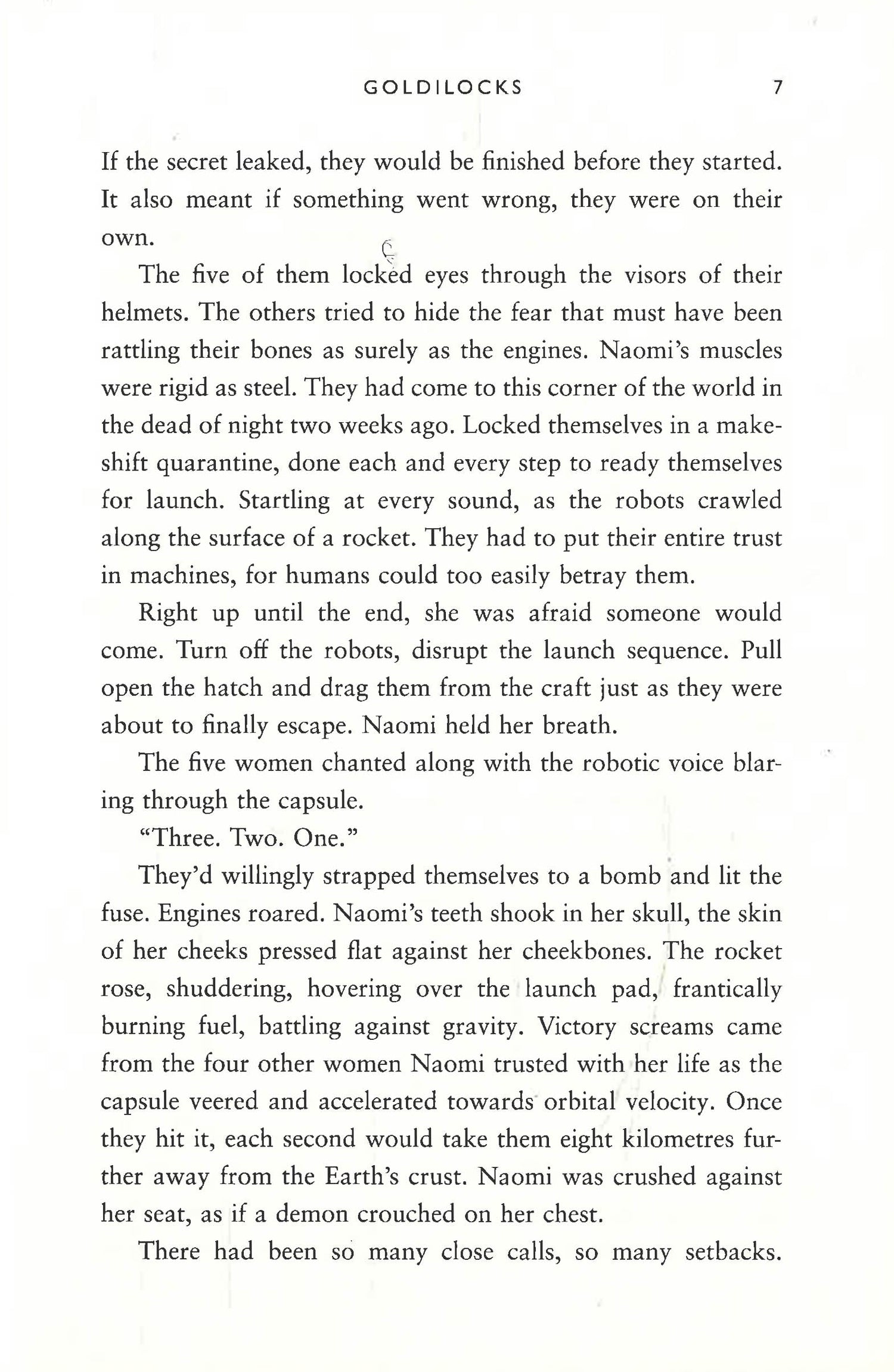 Despite increasing restrictions on the freedoms of women on Earth, Valerie Black is spearheading the first all-female mission to a planet in the Goldilocks Zone, where conditions are just right for human habitation.
