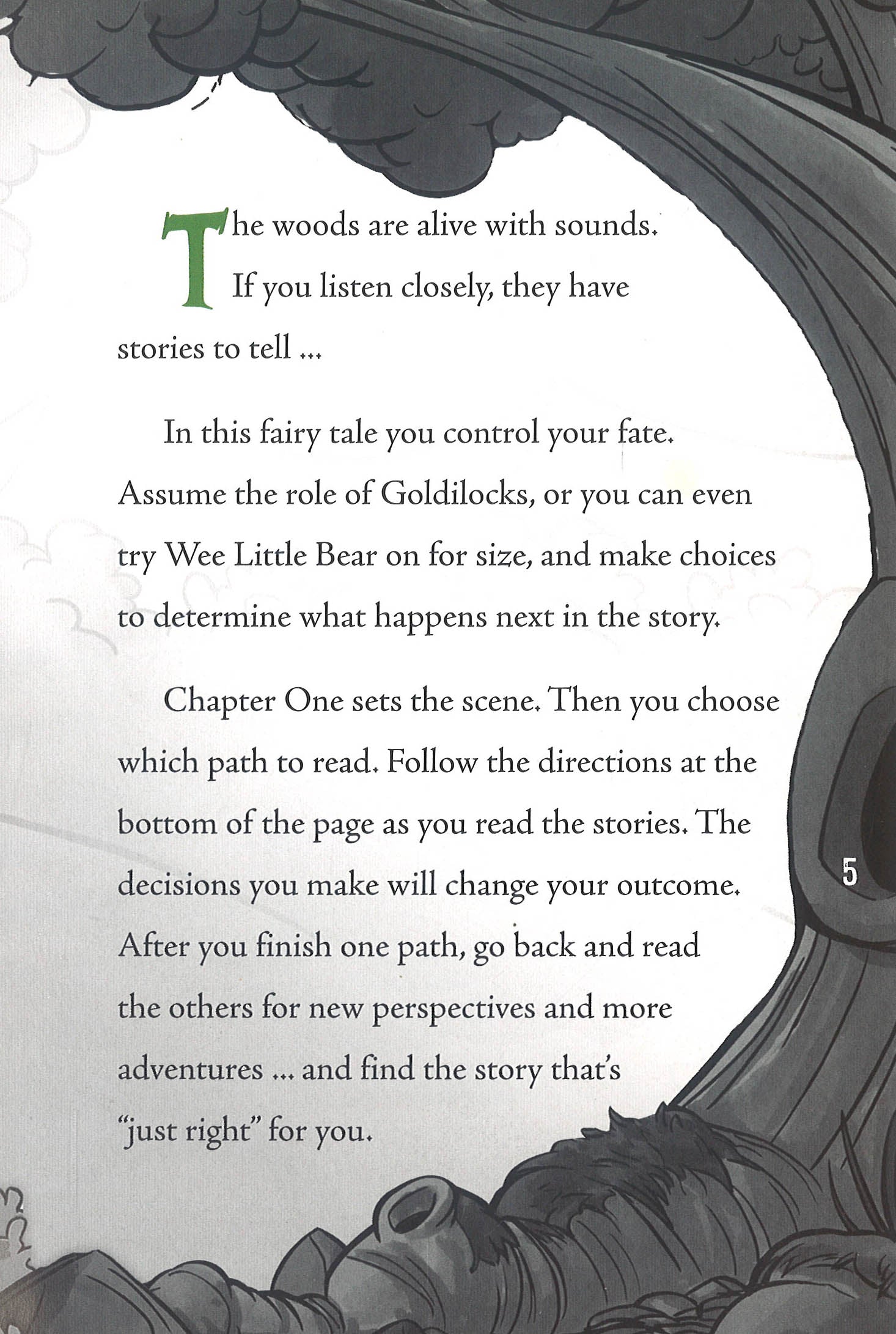 We all know about Goldilocks and the three bears, but did you know that the little bear really runs the show? Or that Goldi was escaping from something worse than bears? Dive into this fairy tale twist, where You Choose the path through three different story lines and dozens of choices that will rewrite this classic tale.