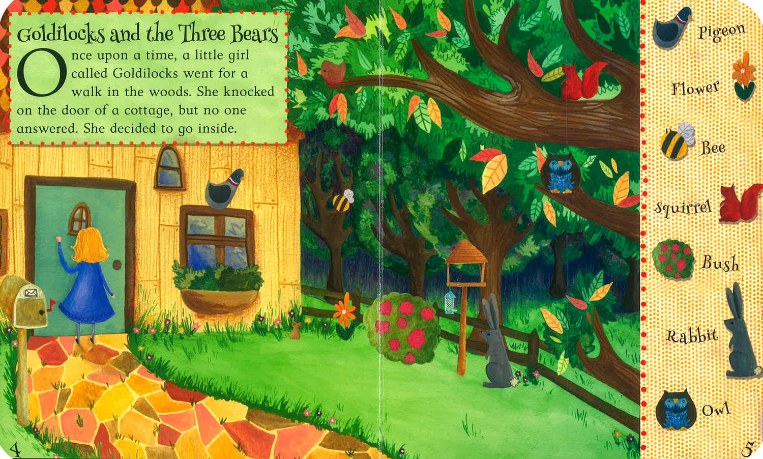 The beloved story of Goldilocks and the three bears - with a special “look and say” twist! Not only will kids enjoy this charming retelling of a popular fairy tale, but eagle-eyed young readers will also have fun searching for creatures and objects hidden inside the pictures. On each page, children will find a sidebar containing items they have to spot and then say aloud - including a ladybug on every spread. At the back, they’ll find an additional treasure hunt activity so they can explore even more!