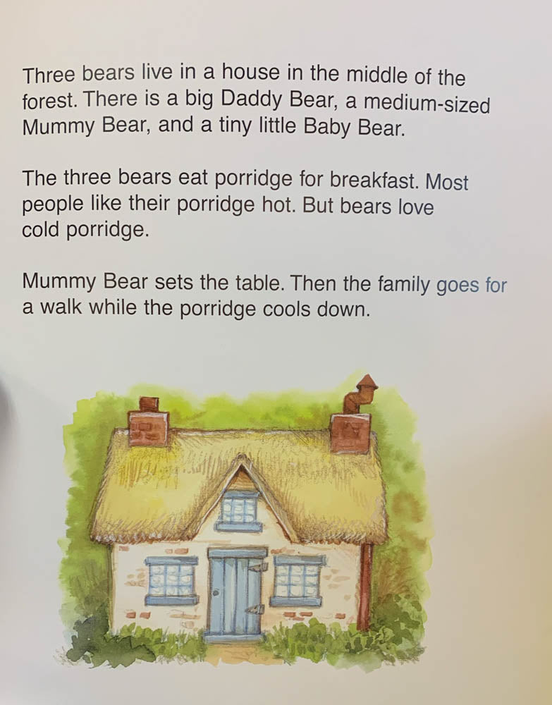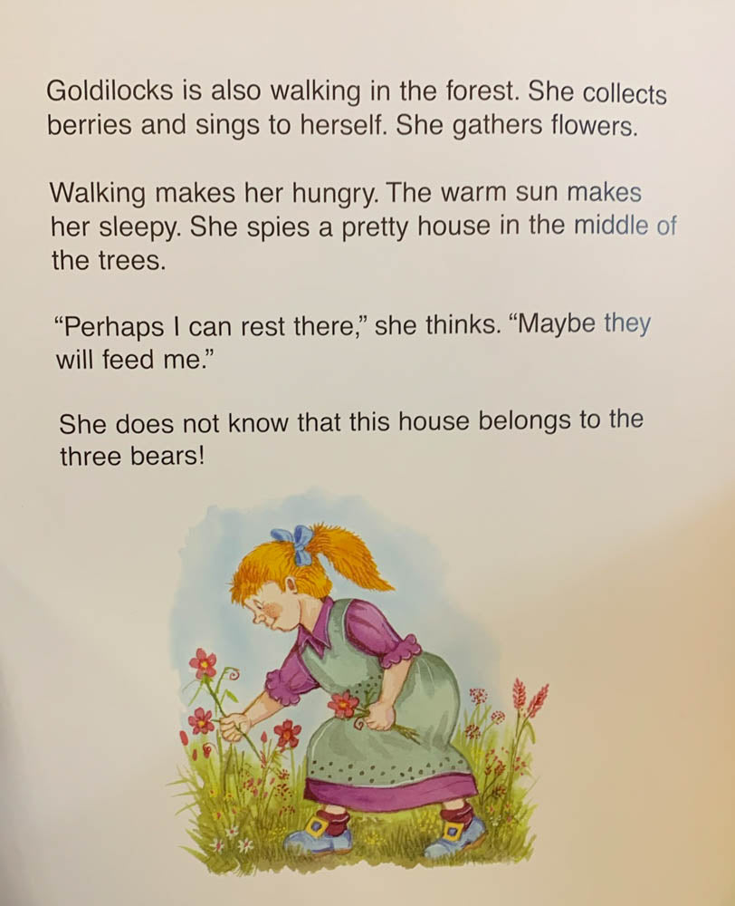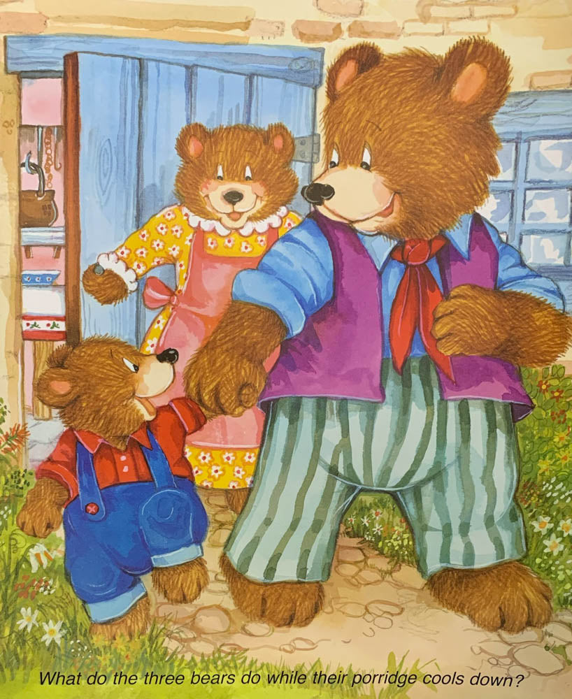 This is an engaging retelling of a classic tale, with appropriate language that children can follow as you read to them or they try for themselves. The delightful storyline, bright and imaginative drawings, and big fun format are designed to appeal to young readers. Interactive questions and writing exercises at the back of the book provide a valuable learning too! Goldilocks is tired and hungry after picking flowers in the woods, and decides to take a rest in a pretty house she finds in a clearing. Little does she know that the house belongs to three bears. What will the bears say when they find out that Goldilocks has been sitting in their chairs, has been eating their porridge, and is now fast asleep in Baby Bear's bed...? The classic children's story is retold for a new generation in this charming book, with lively illustrations throughout, simple vocabulary and familiar language that young readers can follow easily.