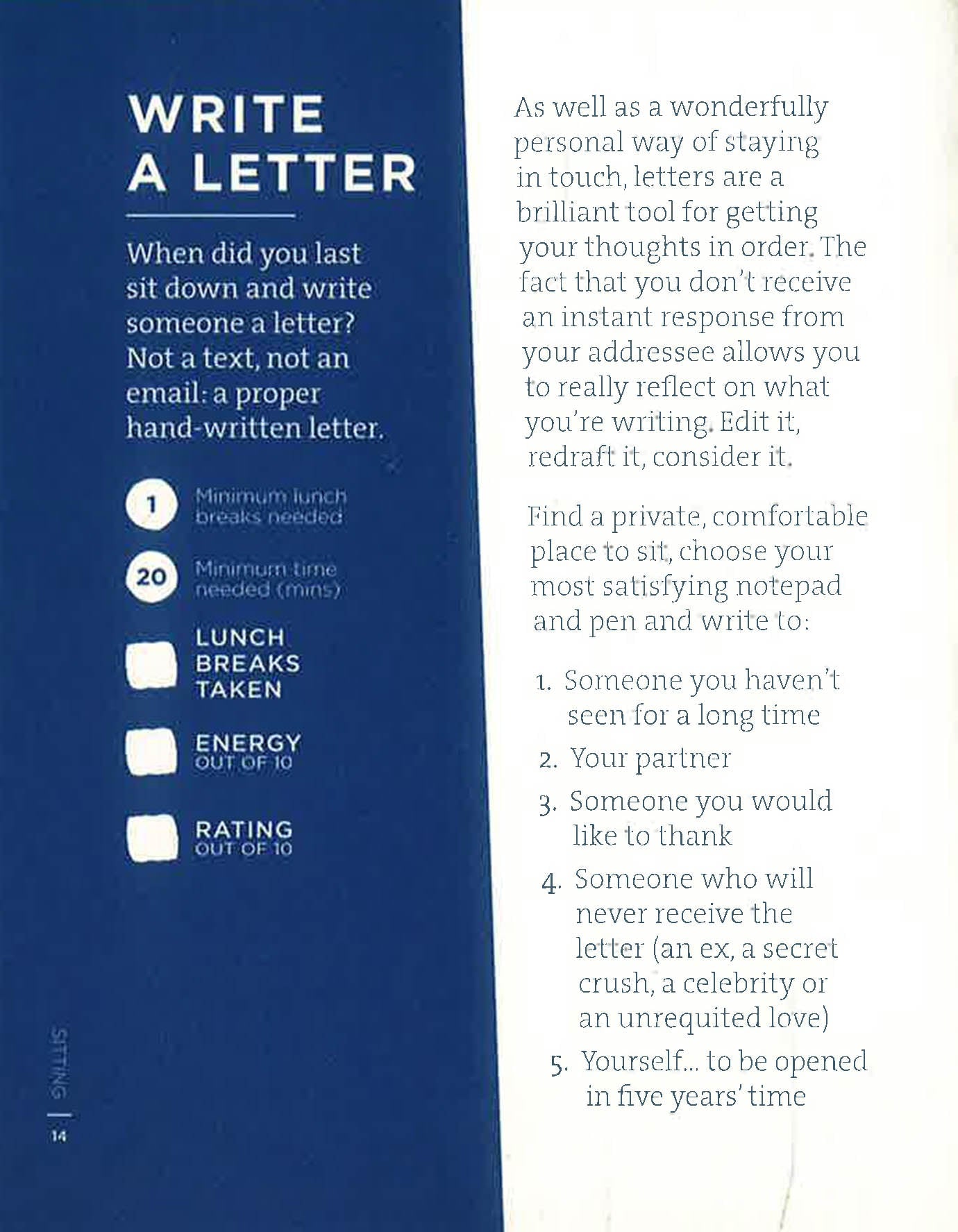 Gone for Lunch is for everyone who wants to reclaim their lunch break - whether they have a whole hour, or just 30 minutes to spare. In this friendly, fun and inspirational book, there's a challenge for every week of the year. Each activity is designed to be suitable for anyone anywhere - at home or at work, in the city or the countryside.