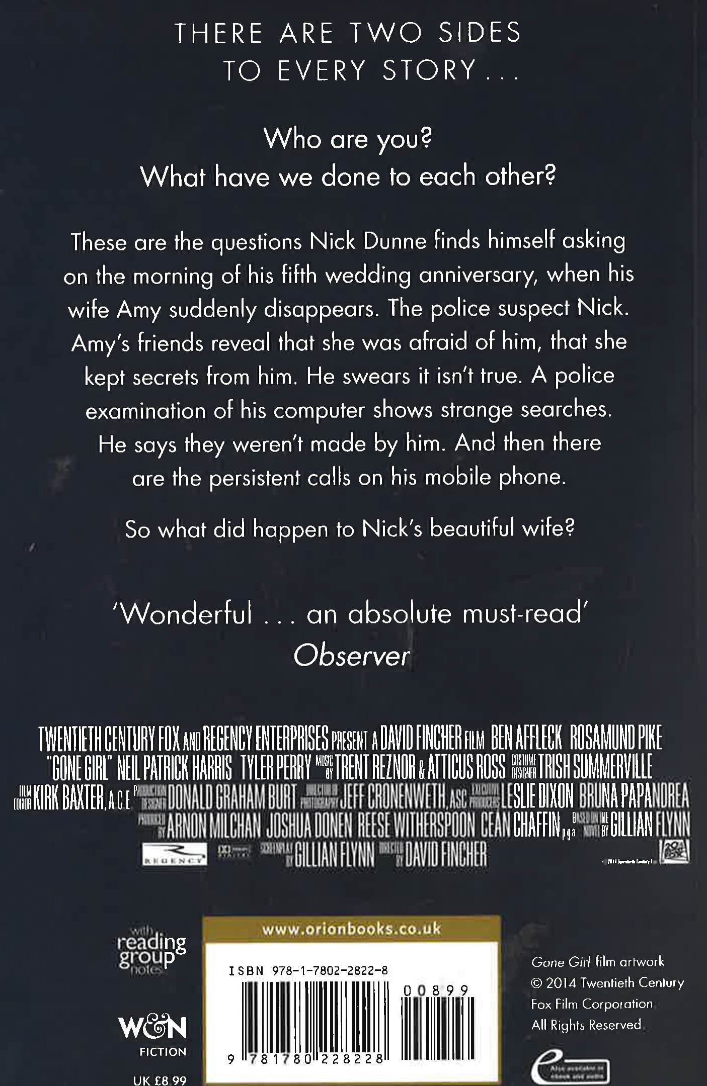 THE ADDICTIVE No.1 BESTSELLER AND INTERNATIONAL PHENOMENON OVER 20 MILLION COPIES SOLD WORLDWIDE Who are you? What have we done to each other? These are the questions Nick Dunne finds himself asking on the morning of his fifth wedding anniversary, when his wife Amy suddenly disappears. The police suspect Nick. Amy's friends reveal that she was afraid of him, that she kept secrets from him. He swears it isn't true. A police examination of his computer shows strange searches. He says they weren't made by him. And then there are the persistent calls on his mobile phone. So what really did happen to Nick's beautiful wife?