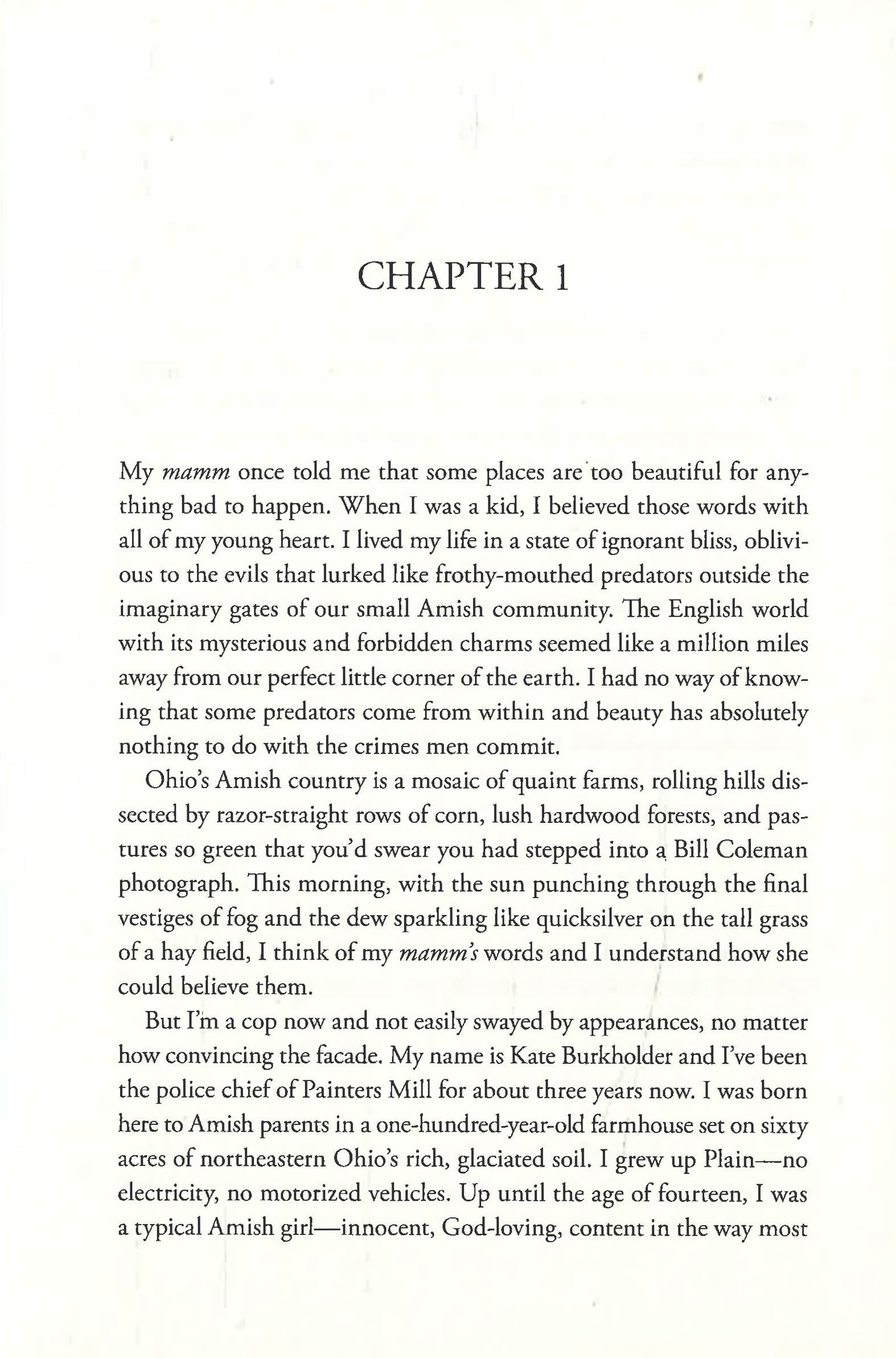 A missing child is a nightmare to all parents, and never more so than in the Amish community, where family ties run deep. When the search for the presumed runaway turns up a dead body, the case quickly becomes a murder investigation. And Chief of Police Kate Burkholder knows that in order to solve this case she will have to call upon everything she has to give not only as a cop, but as a woman whose own Amish roots run deep.