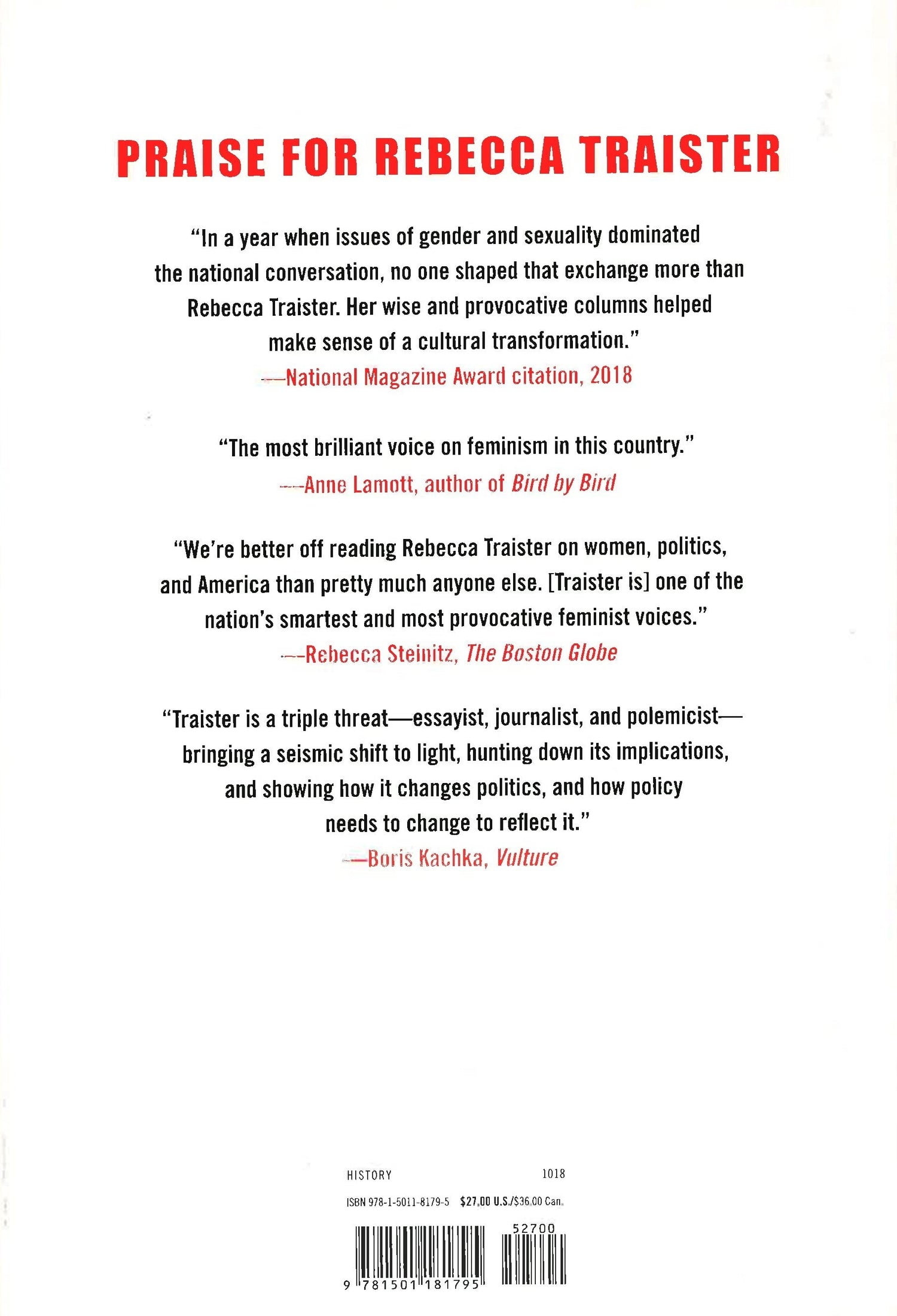 From Rebecca Traister, the New York Times bestselling author of All the Single Ladies comes a vital, incisive exploration into the transformative power of female anger and its ability to transcend into a political movement. In the year 2018, it seems as if women’s anger has suddenly erupted into the public conversation. But long before Pantsuit Nation, before the Women’s March, and before the #MeToo movement, women’s anger was not only politically catalytic—but politically problematic. The story of female fury and its cultural significance demonstrates the long history of bitter resentment that has enshrouded women’s slow rise to political power in America, as well as the ways that anger is received when it comes from women as opposed to when it comes from men.With eloquence and fervor, Rebecca tracks the history of female anger as political fuel—from suffragettes marching on the White House to office workers vacating their buildings after Clarence Thomas was confirmed to the Supreme Court. Here Traister explores women’s anger at both men and other women; anger between ideological allies and foes; the varied ways anger is perceived based on its owner; as well as the history of caricaturing and delegitimizing female anger; and the way women’s collective fury has become transformative political fuel—as is most certainly occurring today. She deconstructs society’s (and the media’s) condemnation of female emotion (notably, rage) and the impact of their resulting repercussions.Highlighting a double standard perpetuated against women by all sexes, and its disastrous, stultifying effect, Traister’s latest is timely and crucial. It offers a glimpse into the galvanizing force of women’s collective anger, which, when harnessed, can change history.