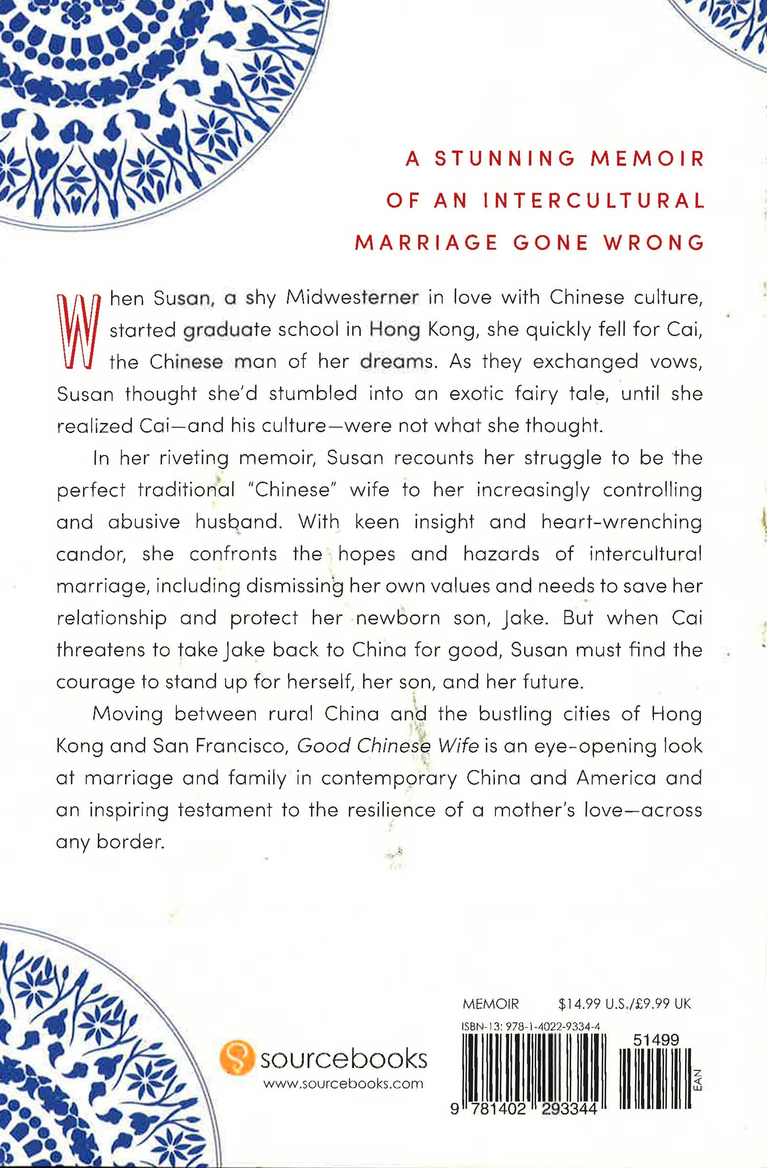 A stunning memoir of an intercultural marriage gone wrongWhen Susan, a shy Midwesterner in love with Chinese culture, started graduate school in Hong Kong, she quickly fell for Cai, the Chinese man of her dreams. As they exchanged vows, Susan thought she'd stumbled into an exotic fairy tale, until she realized Cai--and his culture--where not what she thought.In her riveting memoir, Susan recounts her struggle to be the perfect traditional "Chinese" wife to her increasingly controlling and abusive husband. With keen insight and heart-wrenching candor, she confronts the hopes and hazards of intercultural marriage, including dismissing her own values and needs to save her relationship and protect her newborn son, Jake. But when Cai threatens to take Jake back to China for good, Susan must find the courage to stand up for herself, her son, and her future.Moving between rural China and the bustling cities of Hong Kong and San Francisco, Good Chinese Wife is an eye-opening look at marriage and family in contemporary China and America and an inspiring testament to the resilience of a mother's love--across any border