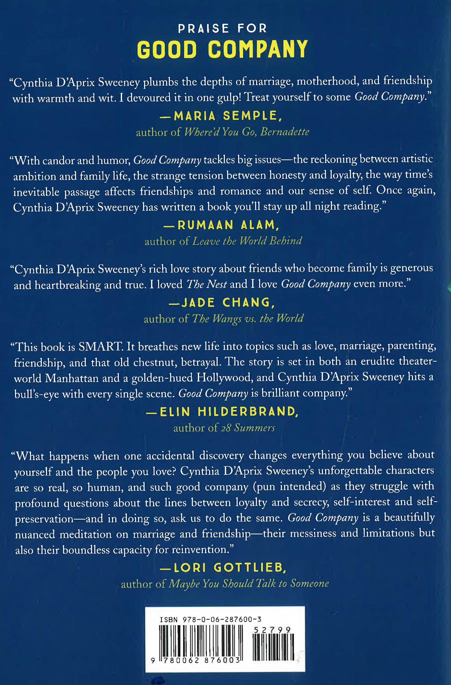 With Cynthia D’Aprix Sweeney’s signature tenderness, humor, and insight, Good Company tells a bighearted story of the lifelong relationships that both wound and heal us.
