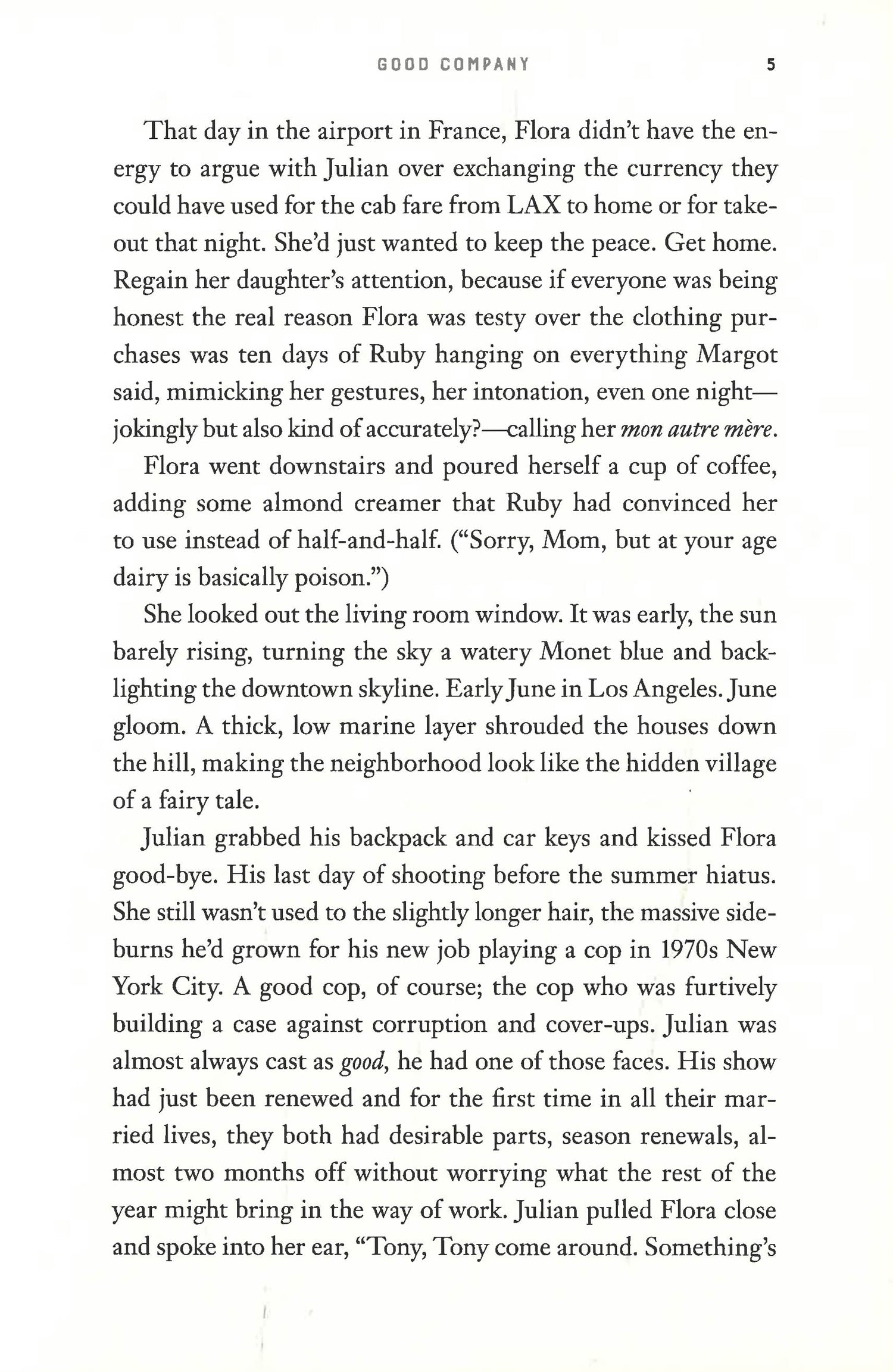 Flora and Julian struggled for years, scraping together just enough acting work to raise Ruby in Manhattan and keep Julian’s small theater company—Good Company—afloat. A move to Los Angeles brought their first real career successes, a chance to breathe easier, and a reunion with Margot, now a bona fide television star. But has their new life been built on lies? What happened that summer all those years ago? And what happens now?