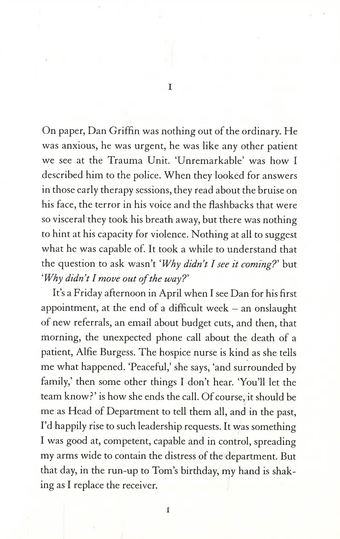Dr Ruth Hartland is the director of a highly respected trauma therapy unit. She is confident, capable and excellent at her job. But she is finding it hard to maintain.