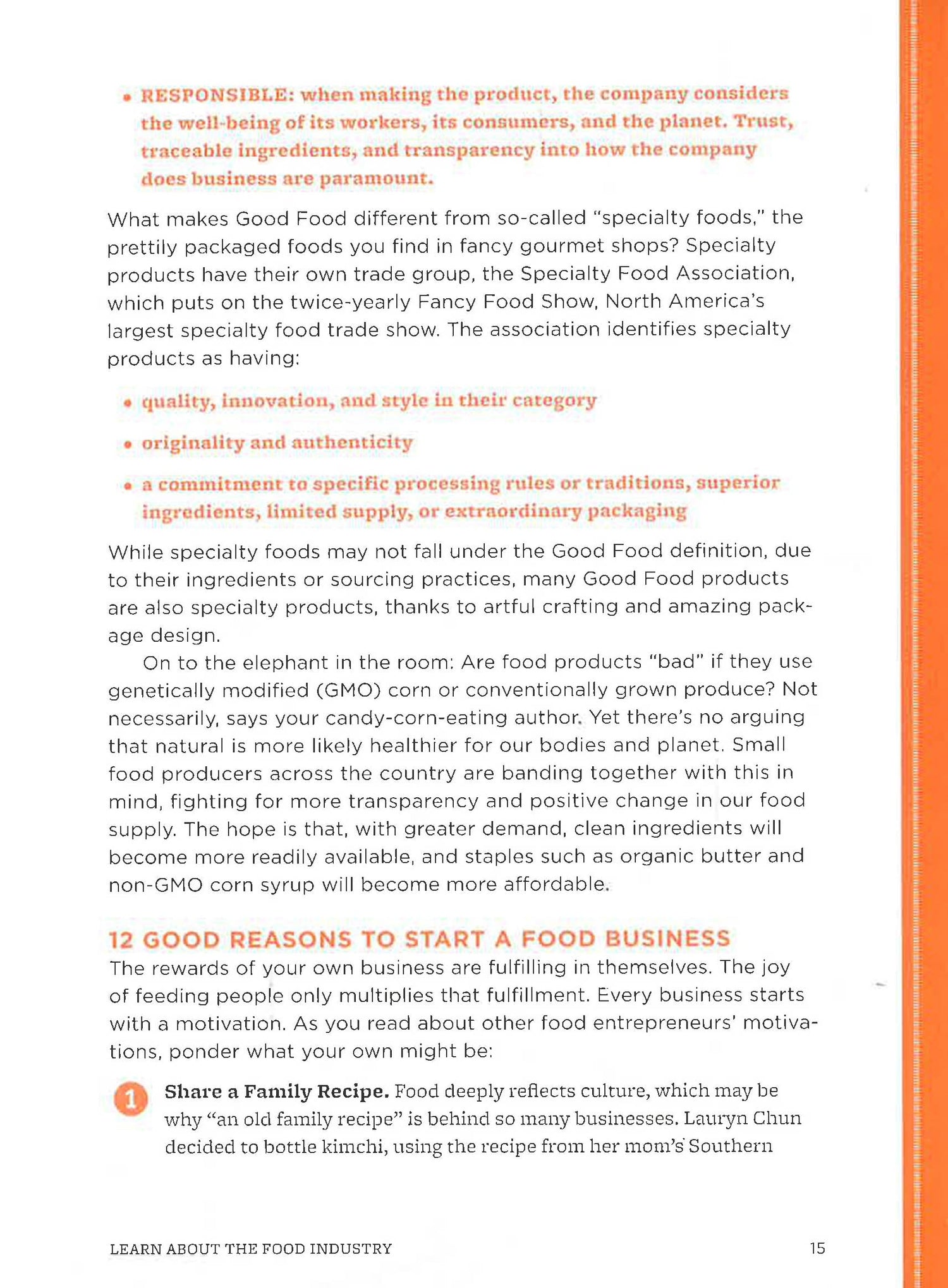 For those ready to follow their foodie dreams (or at least start thinking about it), this book provides the tools to decide if creating a specialty food business is right for you. Whether the goal is selling a single product online or developing a range of gourmet foods for grocery chains, this handbook helps hopeful food entrepreneurs become experts in everything from concept and production to sales and marketing. The author uses real-life examples from more than 75 successful individuals and businesses to illustrate the good, the bad and the ugly of starting a food enterprise, providing links to useful charts and worksheets to simplify the process and keep entrepreneurs organised and focused.