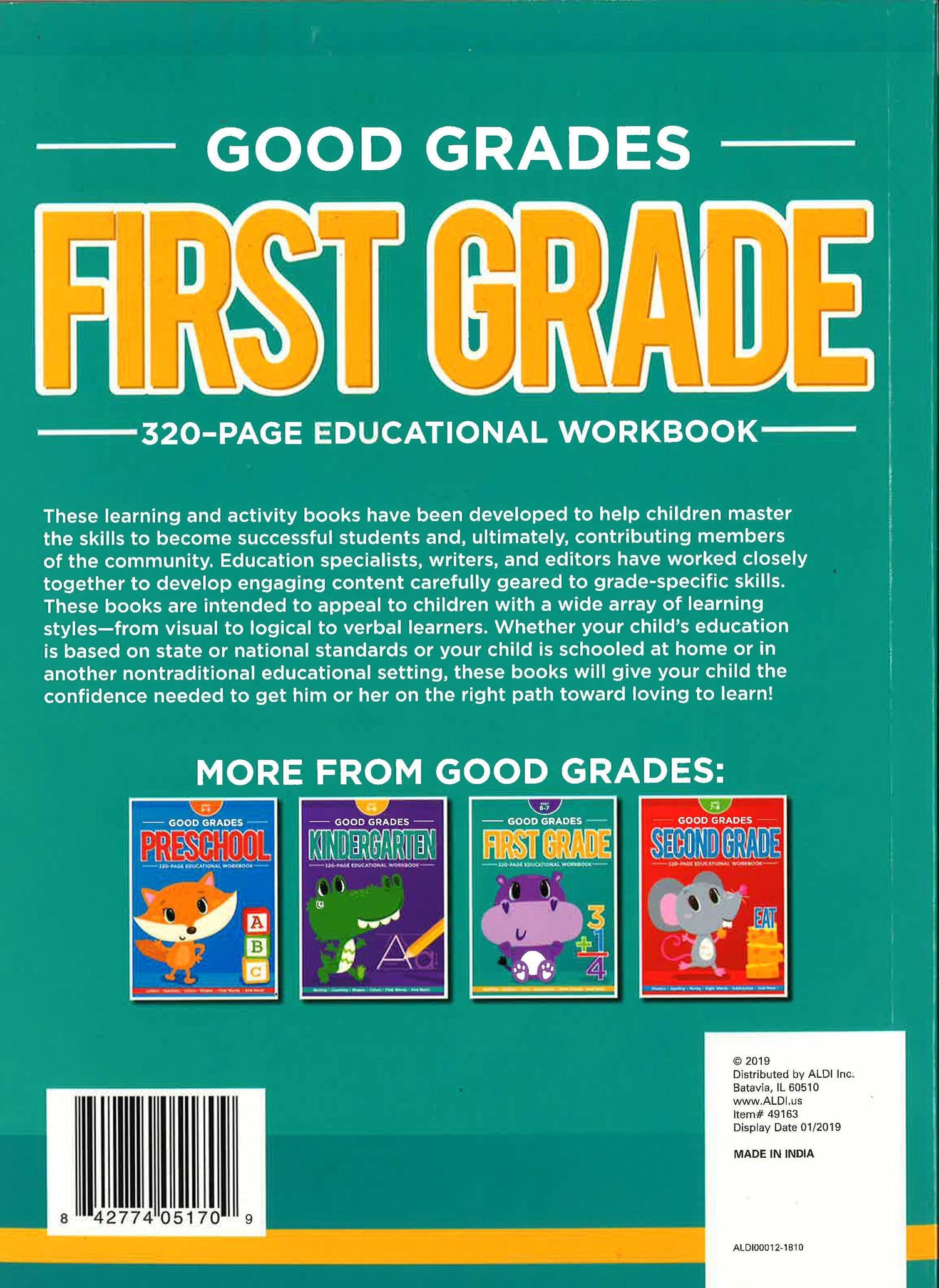This Good Grades Educational Workbook helps children master the skills they'll need to become better students. The book is filled with engaging, full-color activities related to letters, numbers, shapes and so much more. Perfect for home school or to practice at home. First Grade includes: Spelling, Addition, Time, punctuation, Word Sounds and more!